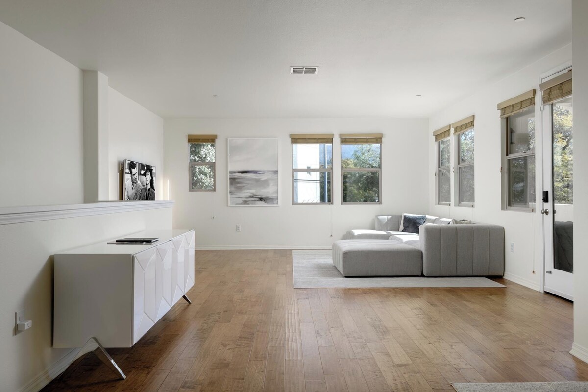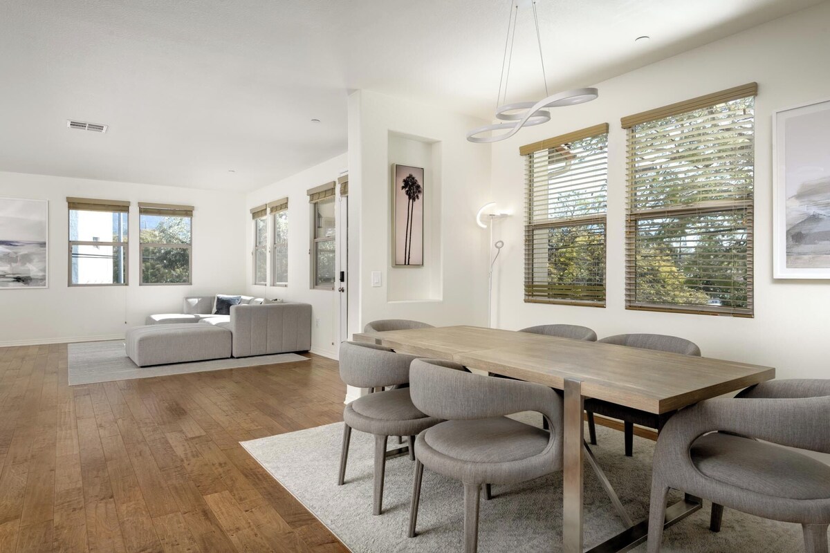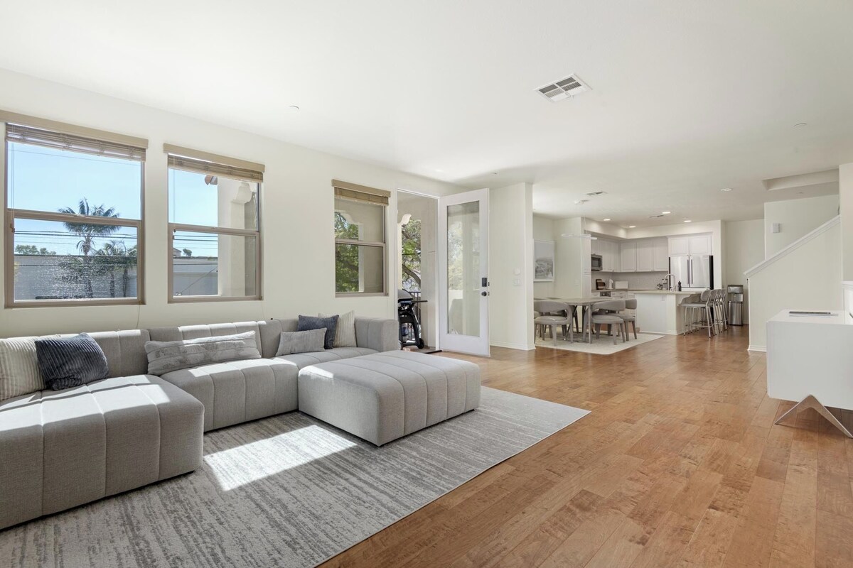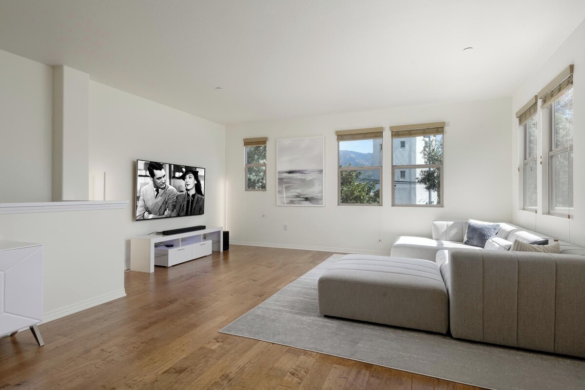 6 months lease minimum. $9950/mo. Deposit $12K. Electric bill, internet and HOA fee are included in rent. Small and medium size pets are allowed with additional deposit. Tech Executives will feel at home in this stylish, modern and digitally controlled Santa Barbara retreat. This unique 4BD+ and 3.5 BA townhome was carefully designed by a CTO to create a personalized light and sound experience. Remotely control all of the settings from your mobile device to arrive at home with heat, A/C, light, music preferences selected. Lighting design was configured providing the best possible light accents and the ability to tailor the colors based on mood or theme. Quiet, family friendly community, East Beach collection, is located in top rated, highly sought after Washington Elementary school district. Situated in a LEED certified Mediterranean Town home complex, it is low maintenance, highly efficient (solar powered). Nestled near the Artsy Funk Zone, beaches, downtown and freeway, this home provides the perfect Santa Barbara experience for a busy CEO with or without family. Vaulted ceilings on main level with living room/kitchen/dining room make it spacious and open for entertaining. Remodeled designer kitchen with clean design and high end Bosch appliances, granite countertops, Scandinavian cabinets, a center island and stainless steel Bosch appliances, Carraway pots and pans and cooking tools provide everything any culinary enthusiast would need. The Living room is situated on the opposite side from the kitchen. The modern theme is balanced with furniture that is comfortable and cozy yet clean and stylish. Select your favorite music, dim and color the lights using the Smart Home pre-set features (e.g. Miami). BBQ year round on the porch while gazing at beautiful SB dusk colors in the sky. Then, serve dinner in the adjacent dining room with large dining table. The well thought out design continues when you move to the third level, where the master ensuite, 2 additional bedrooms and a laundry are located. The master has black out blinds, king bed, walk in closet and master bath providing the perfect Santa Barbara escape. Two additional bedrooms are equipped for children. However, for those who don't have children, the \ lower bunks, could accommodate the occasional guest. Stackable new Samsung front loading Washer / Dryer on the bedroom level makes doing laundry convenient. Detailed breakdown: 2277 sq ft, 3 level home Level 1 - Bonus Guest bedroom/flexroom/office with full bath and covered patio. 2 Car (Tandem) garage is on this level too (alley access) Level 2 Open Living - Kitchen, Dining, Living Room and Balcony area (with powder room) Level 3 Master BD / Master Bath. 2 BD + 2 BA. W/D. Central heat and A/C (hard to find in Santa Barbara) which can be controlled by Smart Home system. Digital Smart Home using mobile app - Security, video cameras, heating, A/C, music and LED lighting. Additional storage in the attached tandem 2-car garage Central Location: 10 minute drive to SB airport, easy access to freeway for commuters. 5 Flat-screen TVs in the living room and queen bedrooms, with AppleTV. Renter is responsible for utilities- water and trash. Owner pays HOA fees, electric bill and internet. Min 3 months lease. Tenant is responsible for regular maintenance, must notify the owner of major repairs needed and updates in the property. The pet policy is negotiable. Our prices include all fees. No hidden fees.