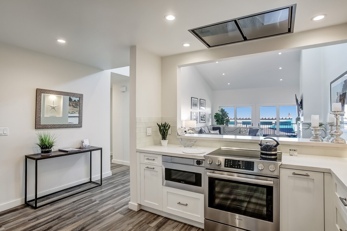 NEW - Welcome to Leadbetter Beach Retreat! 30 night minimum stay...reserve for the month at a large discounted rate and occupy as much as you like during that month! Unwind in ultimate luxury and relax to the soothing sound of waves at Leadbetter Beach Retreat. Enjoy modern amenities, high-end furnishings, exquisite tile details in both kitchen and bathrooms - all beautifully remodeled for your ideal vacation home experience! Immerse yourself in the delights of a luxurious escape, with this newly remodeled penthouse. Revel in its vaulted high ceilings and exquisitely appointed furnishings - not an iota of detail overlooked! Enjoy your stay to the sounds of crashing waves just across from this prime Santa Barbara location. With an unbeatable location offering the beach, the harbor, activities, festivals, restaurants, bars, train station, State Street, The Funk Zone and cafes just a short walk or bike ride away, you will find this property perfectly situated. No need for a car when you can bike, walk or Uber practically everywhere! Your perfect getaway awaits! Our luxurious amenities, combined with stunning ocean views from every bedroom and lanai will make your stay an unforgettable experience. We've crafted the ideal environment for a cozy family dinner or just drinks among friends - right down to the smallest details. Professionally interior designed with Santa Barbara local treasures found all over the interior and quality bedding and linens, this property gives you the \ yet the comforts and amenities that only a home can provide. Guests can stretch out and unwind and have privacy all at the same time. Enjoy the heated pool, spa and rec deck with BBQs! All linens, cookware, beach gear and supplies are provided to all of our guests, all of the time. Just pack your bathing suit and let us do the rest… we care about your stay and hope to have you as our guest very soon! Pack and play portable crib provided 30 night minimum stay per HOA Rules and Regulations 1 Small (50 lb or less) non-shedding dog allowed. Guests acknowledge that some homes provide central A/C while others provide portable rolling high efficiency A/C units. Please inquire first. This property may or may not have surveillance cameras installed in common areas for security purposes only. Any such cameras (if applicable) are strictly limited to public common areas and are expressly prohibited in any location where a reasonable expectation of privacy exists, in accordance with California Penal Code 647(j). Good Neighbor Policy and city regulations require the use of decibel monitoring devices when located in residential areas. These are not listening or recording devices. Our prices include all fees. No hidden fees.