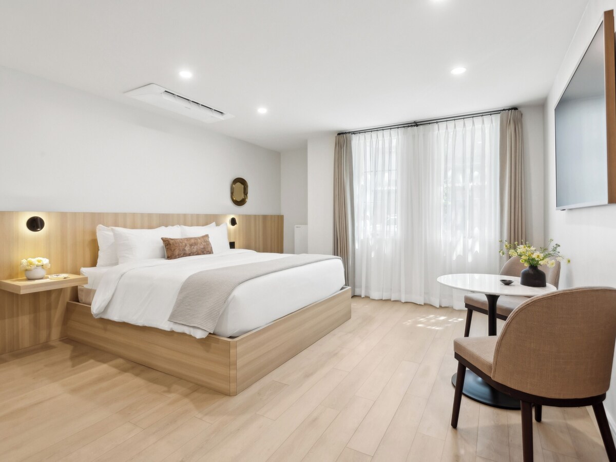 Nestled on the ground floor (no stairs), in a charming multi-unit Spanish-style property, just three blocks from State Street, this 340 sq ft retreat seamlessly blends historic architectural charm with modern luxury, minimalism and convenience. The Space - King-size bed, sleeps 2 (Cool Gel Chill memory foam mattress) - Two pillow types are available for each guest stay—a firm non-feather pillow and a softer feather pillow—for your comfort and selection. - 65\ ,