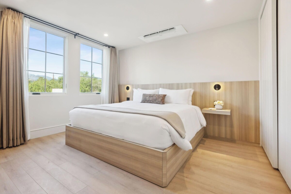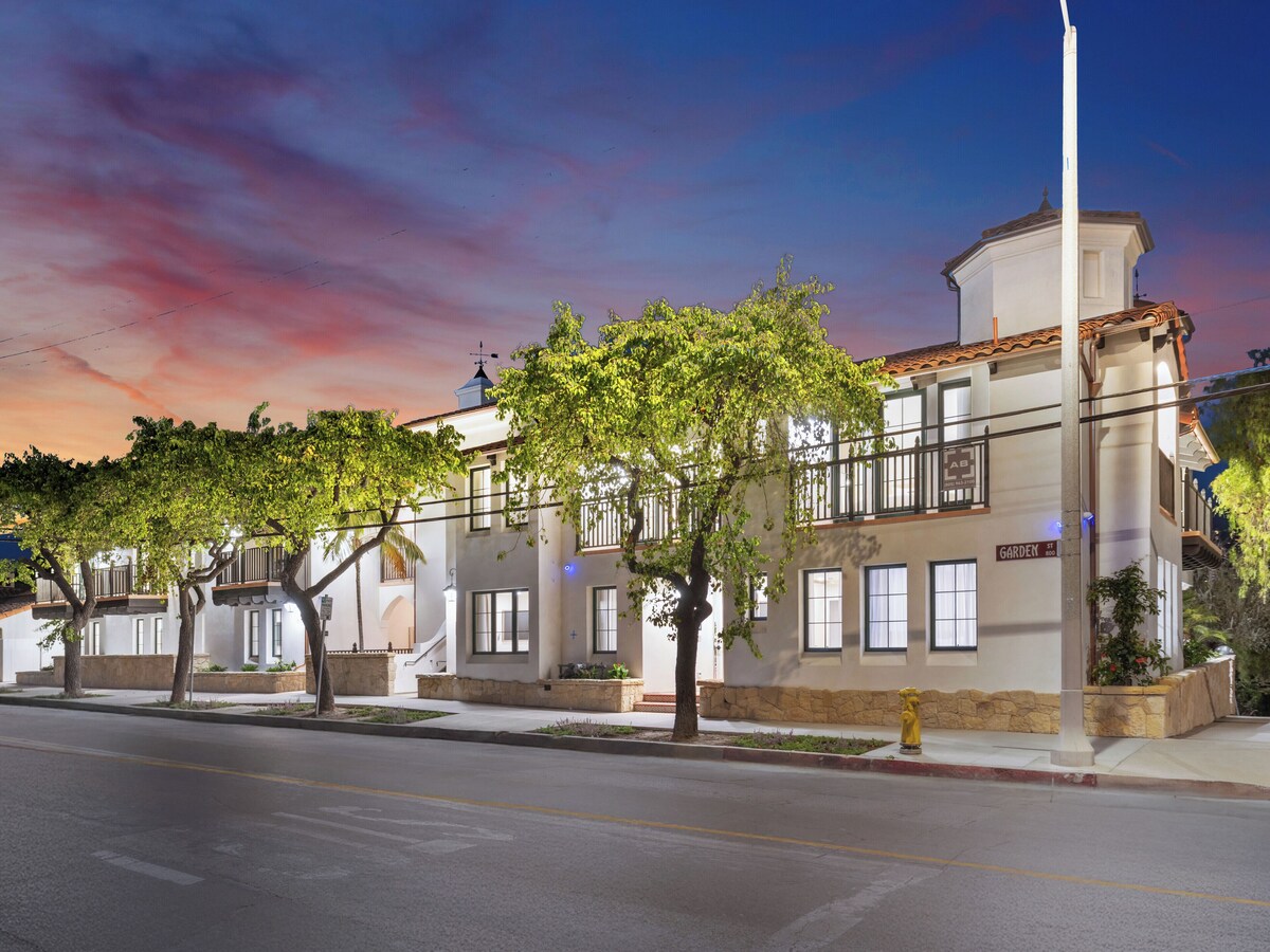 Nestled on the ground floor (no stairs), in a charming multi-unit Spanish-style property, just three blocks from State Street, this 533 sq ft retreat seamlessly blends historic architectural charm with modern luxury, minimalism, and convenience. Indulge in breathtaking mountain views right from your bed! The Space - King-size bed, sleeps 2 (Cool Gel Chill memory foam mattress) - Two pillow types are available for each guest stay—a firm non-feather pillow and a softer feather pillow—for your comfort and selection. - Living room with queen-sized Crate & Barrel sleeper sofa (sleeps 2) - 65\ n Play, high chair, and changing mat available upon request - (please reserve in advance) - Casa Riviera 10 is located on the first floor of a two-story, 30-unit boutique hotel Access - The doors are equipped with smart locks, and a unique code matching the last four digits of your phone number on file will be generated and sent to you on check-in day via SMS. - Free parking in private underground garage, on a first-come, first-served basis; accessible by elevator to all floors - Free street parking if the garage is full - No daily housekeeping; refresh service available for 5+ night stays (by request) Interaction - Contactless stay - no front desk or office - 24/7 emergency hospitality line - Hospitality team is always available via text/call/chat from 5 am–1 am Neighborhood You ,
