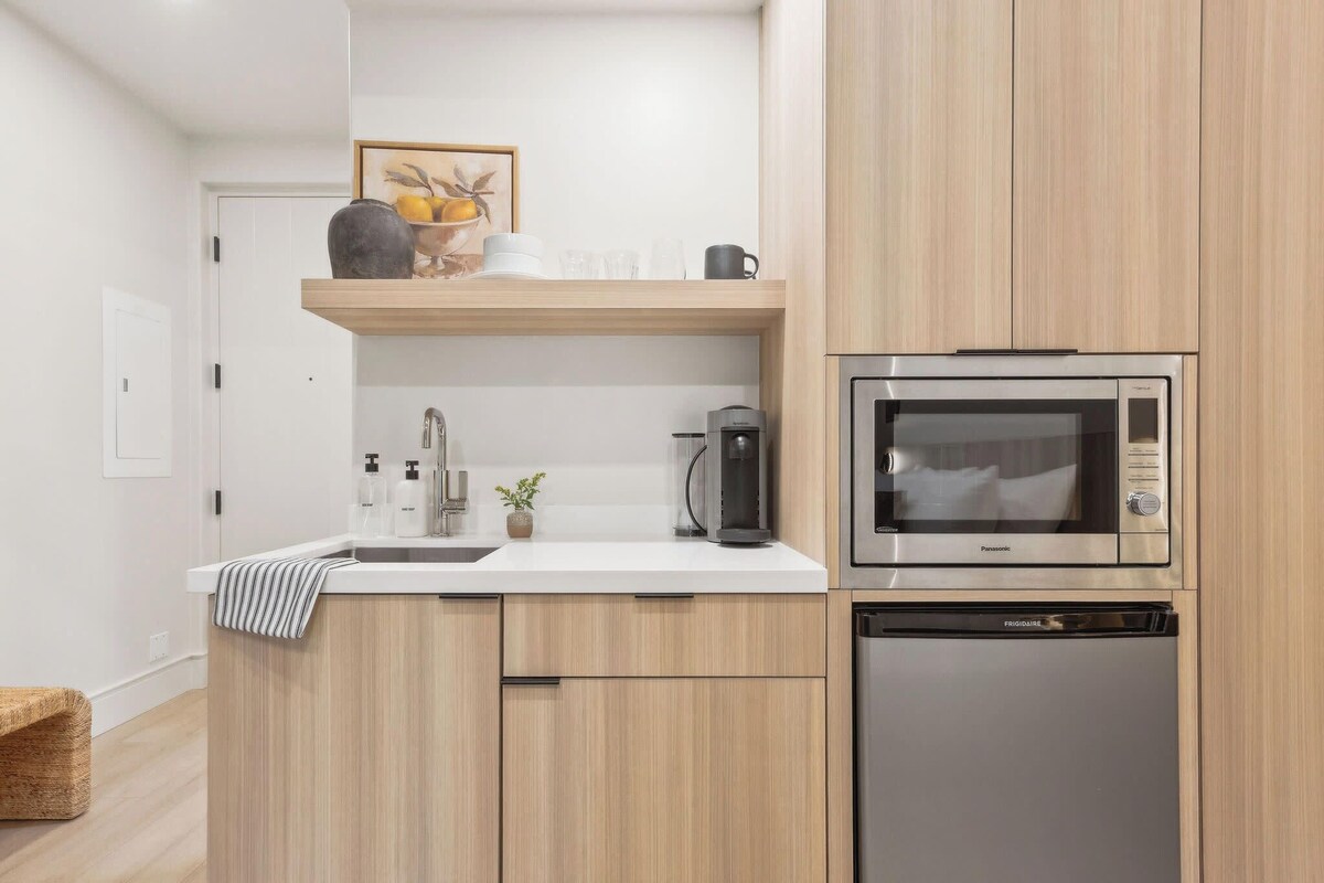 Nestled on the second, top floor (with elevator/stairs), in a charming multi-unit Spanish-style property, just three blocks from State Street, this 338 sq ft retreat seamlessly blends historic architectural charm with modern luxury, minimalism, and convenience. Featuring a nicely sized balcony facing State Street, you can enjoy your morning Nespresso in your private outdoor space. - King-size bed, sleeps 2 (Cool Gel Chill memory foam mattress) - Two pillow types are available for each guest stay—a firm non-feather pillow and a softer feather pillow—for your comfort and selection. - 65\ n Play, high chair, and changing mat available upon request - must be requested in advance, depending on availability - Casa Riviera 16 is located on the second floor of a two-story, 30-unit boutique hotel Access - The doors are equipped with smart locks, and a unique code matching the last four digits of your phone number on file will be generated and sent to you on check-in day via SMS. - Free parking in private underground garage, on a first-come, first-served basis; accessible by elevator to all floors - Free street parking if the garage is full - No daily housekeeping; refresh service available for 5+ night stays (by request) Interaction - Contactless stay - no front desk or office - 24/7 emergency hospitality line - Hospitality team is always available via text/call/chat from 5 am–1 am Neighborhood You ,