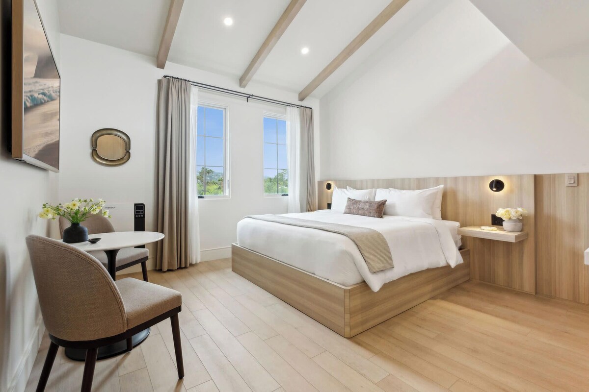 Nestled on the second, top floor (with elevator/stairs), in a charming multi-unit Spanish-style property, just three blocks from State Street, this 329 sq ft retreat seamlessly blends historic architectural charm with modern luxury, minimalism, and convenience. Featuring large windows with beautiful mountain views! - King-size bed, sleeps 2 (Cool Gel Chill memory foam mattress) - Two pillow types are available for each guest stay—a firm non-feather pillow and a softer feather pillow—for your comfort and selection. - 65\ n Play, high chair, and changing mat available upon request - must be requested in advance, depending on availability - Casa Riviera 24 is located on the second floor of a two-story, 30-unit boutique hotel Access - The doors are equipped with smart locks, and a unique code matching the last four digits of your phone number on file will be generated and sent to you on check-in day via SMS. - Free parking in private underground garage, on a first-come, first-served basis; accessible by elevator to all floors - Free street parking if the garage is full - No daily housekeeping; refresh service available for 5+ night stays (by request) Interaction - Contactless stay - no front desk or office - 24/7 emergency hospitality line - Hospitality team is always available via text/call/chat from 5 am–1 am Neighborhood You ,