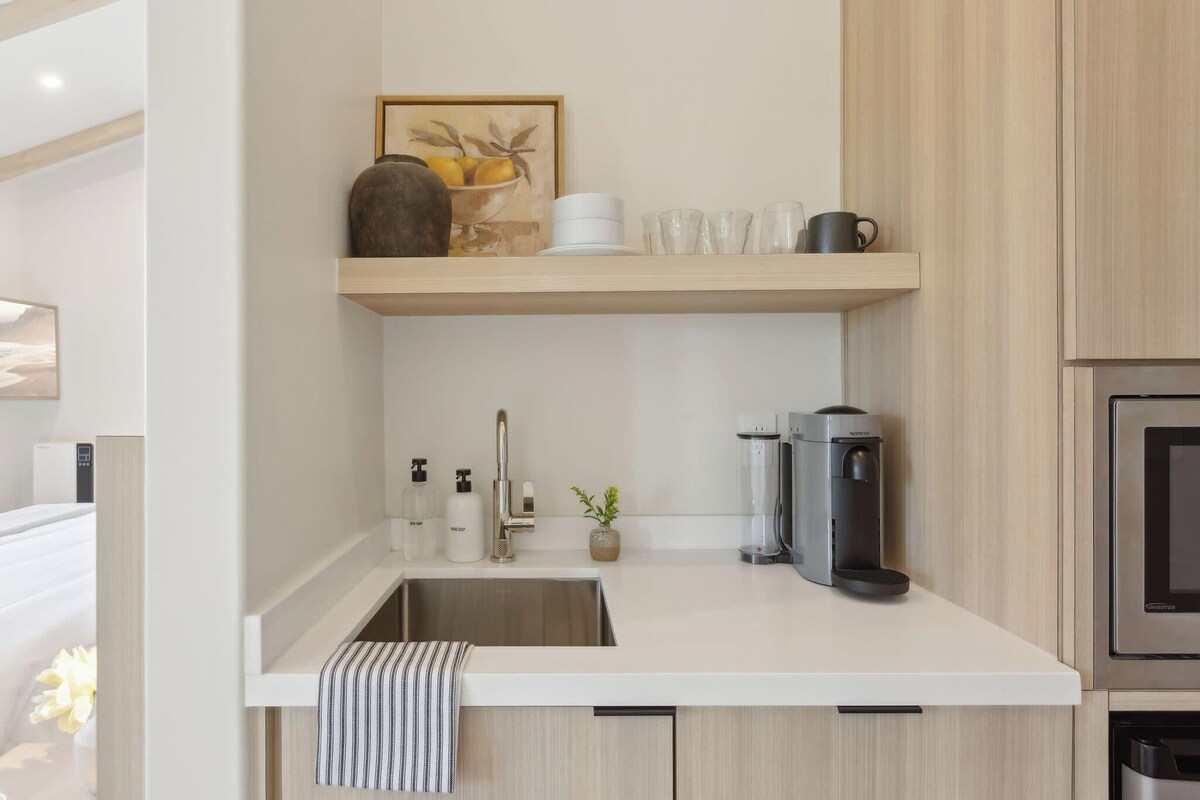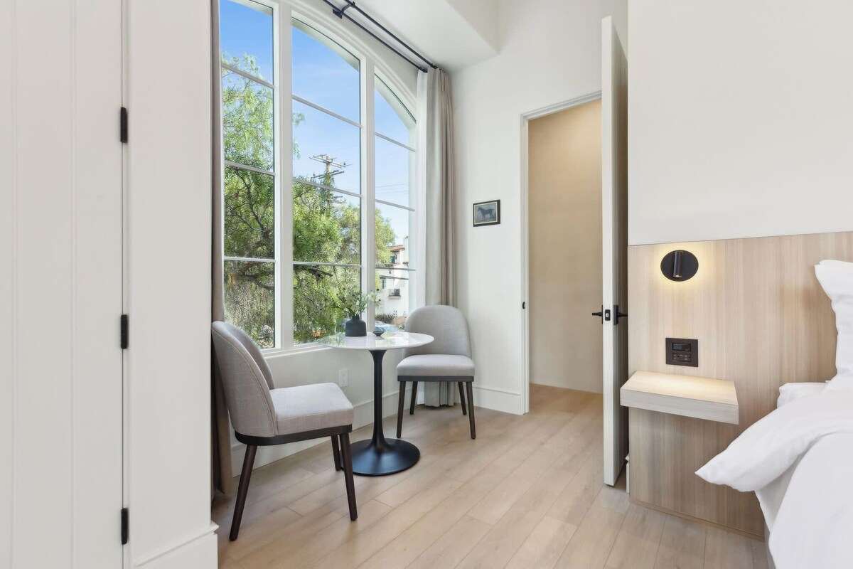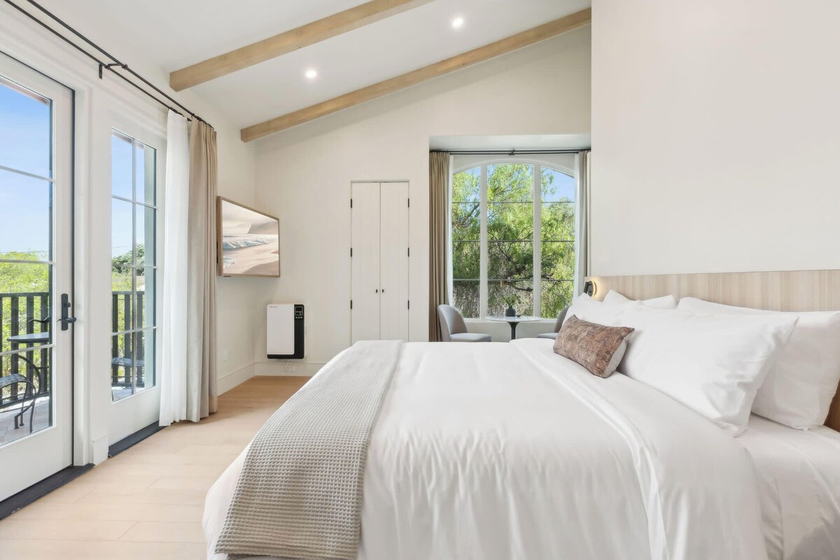 Nestled on the second, top floor (with elevator/stairs), in a charming multi-unit Spanish-style property, just three blocks from State Street, this 405 sq ft retreat seamlessly blends historic architectural charm with modern luxury, minimalism, and convenience. Featuring a spacious private balcony with picturesque mountain views where you can enjoy your morning Nespresso brew or sunset glass of wine! This larger corner unit offers much natural light from multiple windows. - King-size bed, sleeps 2 (Cool Gel Chill memory foam mattress) - Two pillow types are available for each guest stay—a firm non-feather pillow and a softer feather pillow—for your comfort and selection. - 55\ n Play, high chair, and changing mat available upon request - must be requested in advance, depending on availability - Casa Riviera 26 is located on the second floor of a two-story, 30-unit boutique hotel Access - The doors are equipped with smart locks, and a unique code matching the last four digits of your phone number on file will be generated and sent to you on check-in day via SMS. - Free parking in private underground garage, on a first-come, first-served basis; accessible by elevator to all floors - Free street parking if the garage is full - No daily housekeeping; refresh service available for 5+ night stays (by request) Interaction - Contactless stay - no front desk or office - 24/7 emergency hospitality line - Hospitality team is always available via text/call/chat from 5 am–1 am Neighborhood You ,