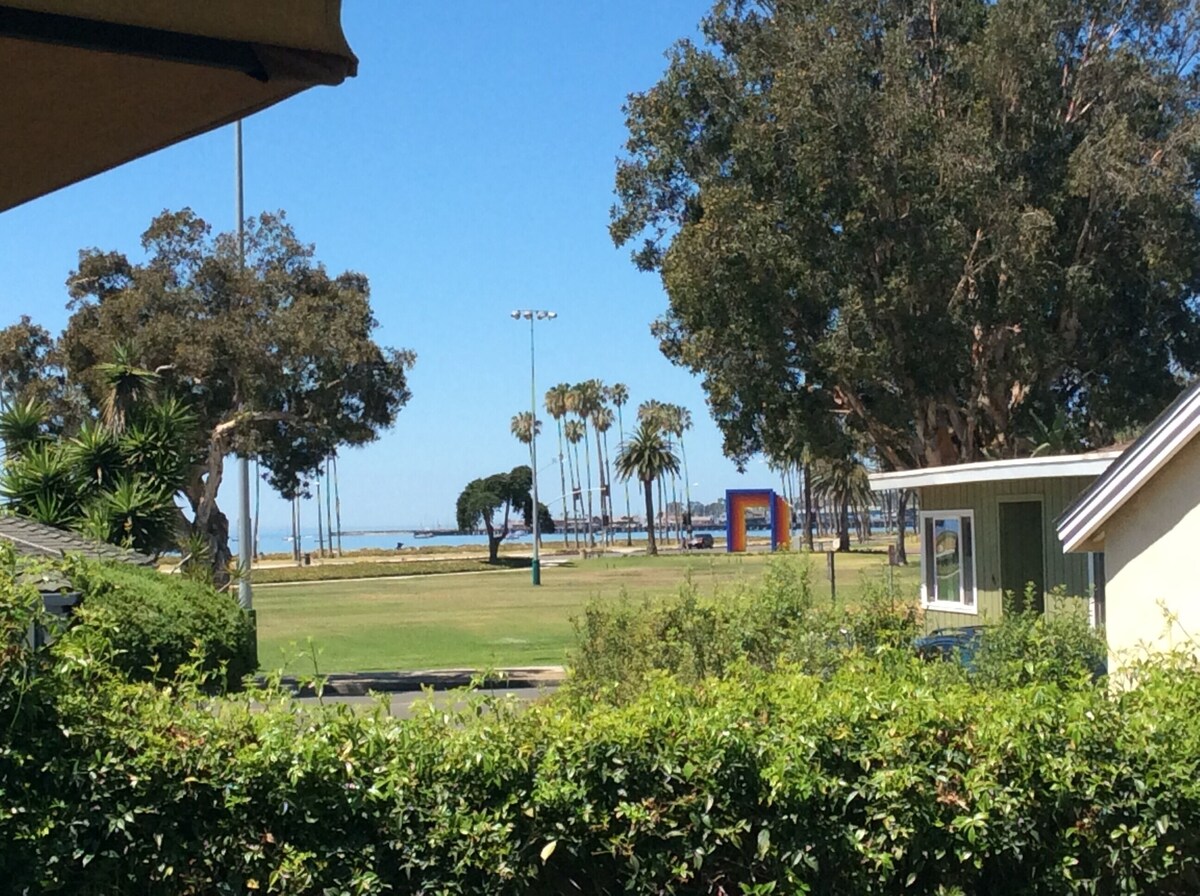 NOTICE: Effective 7/1/2024 - California Senate Bill 478 (SB478) eliminates hidden fees. The nightly rate quoted on VRBO for this property includes 100% of the rental rate, host fee (cleaning fee) AND14% local taxes AND all VRBO service fees. SB478 applies to all hotel & vacation rentals throughout the state of California. We have an Irreplaceable Location with Direct Ocean Views from the back unit. Only 1 Block Off Ocean. The only area separating The BACK COTTAGE accross the street and the Ocean is the Beautiful Santa Barbara Park! Come discover the charm, beauty and diversity of Santa Barbara from the convenience and peace of The Cottages at East Beach. The Back unit is fully furnished with two bedrooms, one full bathroom, a fully equipped kitchen, washer/dryer, 60” HD TV's w/ Blue Ray DVD, Wireless Internet access, as well as off-street parking. The property is recently renovated and the interiors are professionally decorated to provide our guests with the ultimate in style and comfort. The cottage offers views to Cabrillo Park and the ocean. We have two stroller-joggers, beach chairs and towels, pack-n-plays and some beach toys. This cottage is a true getaway that has it all. Come, relax and enjoy the spirit of Santa Barbara! Other Activities This unique location allows you to literally walk across the street to famed East Beach and be within walking distance to the waterfront and harbor, downtown as well as Montecito, For those who want to venture farther out there is the wine country and many other worthwhile attractions. This is a delightful property to hold family reunions and is extremely kid friendly. The nearby zoo and enticing playgrounds make great play time while Santa Barbara hosts a variety of fabulous eateries for every taste and budget. Contact us today and treat yourself to the delightful winter when the crowds disappear and the weather is heavenly. Keywords: ocean view 2 bedroom pet friendly Our prices include all fees. No hidden fees.