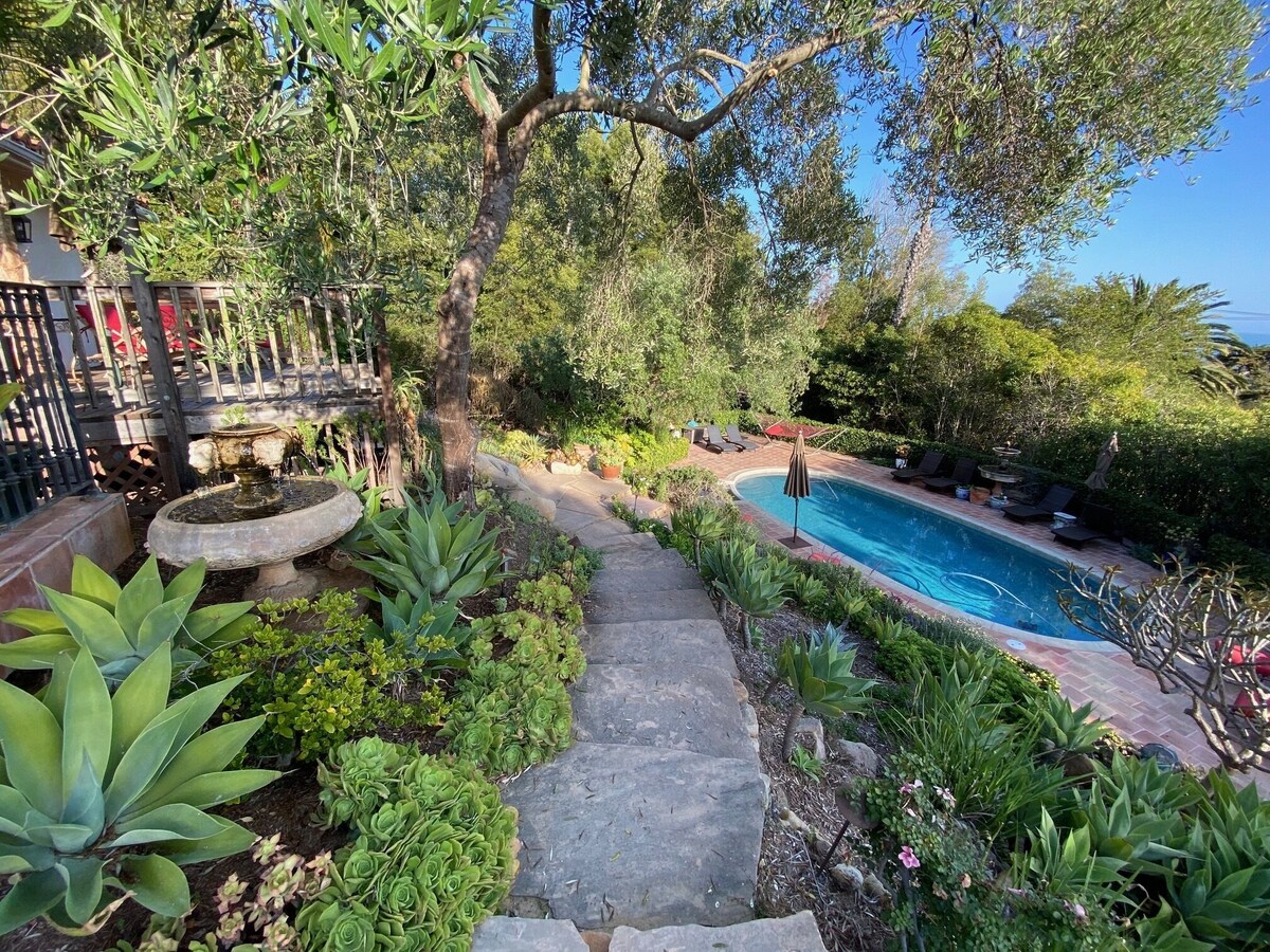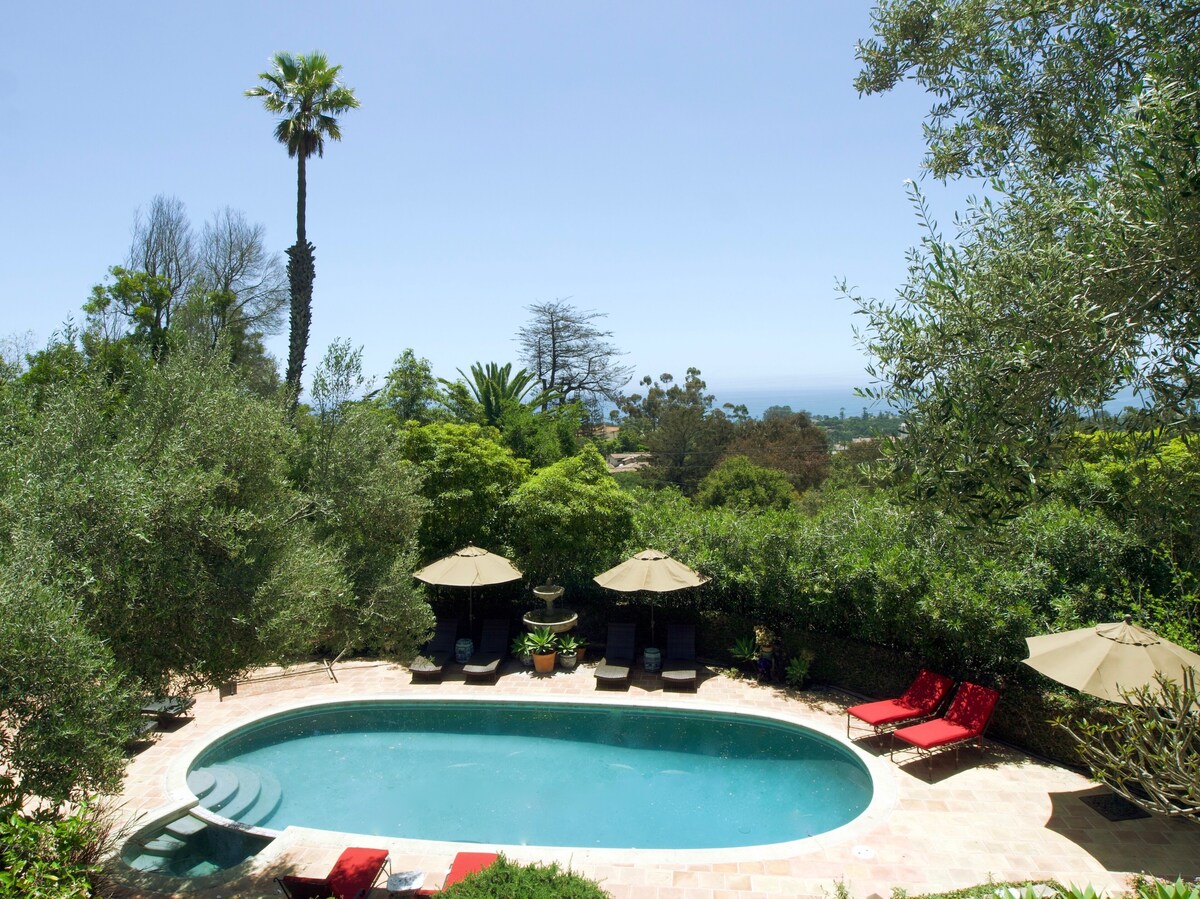 If you wish to request a rental, please provide some detail about your group. Thank you! (Recent upgrades: Kitchen remodel, Infra-red patio heaters, new mattresses throughout, master bathroom remodel, air conditioning.) Just three minutes from the beach, and enjoying one of the most spectacular and breathtaking views, this gated private oasis overlooks the ocean, the beaches, and the Channel Islands. Situated in the foothills of Santa Barbara, this home lies between upper and lower Montecito village. A stunning, spacious, comfortable house built on one level, designed for indoor/ outdoor living with air-conditioning and a pool and hot tub. Just a few minutes away from the restaurants, and shops of Montecito and yet close enough to hop on the freeway and enjoy downtown Santa Barbara. Three of Montecito's golf clubs, and butterfly beach by the Four Seasons Biltmore and San Ysidro ranch are but a five minute drive. Beautifully decorated and consistently described by guests as wonderfully comfortable and manageable, this home is the perfect spot to create life long memories. An antique gateway opens to reveal a beautiful home surrounded by an expansive terrace and entertainment area, the focal point of this house. Well furnished with chaise lounges, comfortable sofas and an olive-shaded eating area, the long terrace overlooks the lush terraced gardens and pool area. It is the perfect place to spend time enjoying the expansive views, sipping sundowners or having brunch with friends and family in Santa Barbara’s temperate climate. Inside, original paintings by European artists, antique Moroccan and Mexican doors and terra-cotta terazza floors abound. To the right of the entrance hallway is the formal dining room, where one can dine surrounded by beautiful paintings and one-of-a-kind antiques. Just beyond the dining room is the large formal living room, with all of the creature comforts, including a fireplace, 2 long couches. a Sonos sound system and an abundant and eclectic collection of books. Leading off both these rooms is the large terrace with a retractable awning overlooking the ocean. Entertaining inside and out is the way this house was designed to be enjoyed, in true California style with a european sense of flair and comfort. The dining room and foyer lead into the gourmet kitchen area and Family Room. The Family room features 14-foot vaulted ceilings and offers a space everyone can enjoy. It contains a seating area and a 70\ TV. French doors lead onto its own private patio with a truly extraordinary ocean view. The Patio staircase take you on your own path to the pool and Jacuzzi. The principal bath contains dual sinks, a large tub, a TV, a sitting vanity area, private toilet, and glass-enclosed shower. Leading off it is a dressing room/ walk through closet. All of the bedrooms have pillow-top mattresses (3 new in 2021), high-end European comforters and beautiful linen. Our guests constantly comment on the quality of the beds and the fabulous nights sleep they get. 2 guest rooms on the far end of the house are situated just beyond the principal suite, both have private entrances to the back patio area. This secondary principal suite has a California-King bed and the other guest room is equipped with a queen four-poster bed and walk-in closet. Both rooms can be closed off from the rest of the house, creating a two-bedroom suite, or private secondary principal bedroom. These guest rooms share a roomy bathroom with a Jacuzzi tub and separate glass-enclosed shower. Two additional suite-style bedrooms are situated past the kitchen/great room area. One has a Queen size bed, en-suite bathroom with jacuzzi tub and shower, a walk-in closet, looking onto the rear garden. The other has a bathroom with shower (Remodeled in 2018), flat screen TV and twin beds looking onto the sea view. GYM & HOME OFFICE Our separate gym/home-office, is available (for an additional $500 per week, including cleaning/sanitation fee). Situated just a few steps from the principal bedroom, at the side of the house, the gym/office is a separate building, with a small deck and ocean views. It is equipped with a SoulCycle spinning bike (similar to Peloton), a Plate machine, hand-weights, a yoga mat and a full-wall mirror. It also has a flat screen cable TV, a small desk and chair, computer monitor, and an intercom/phone and Wi-Fi, so can be used as a home-office for those who need a quiet place to work or write. This space is strictly for the use of adults only. There is a separate Laundry room. And a separate powder room. In addition to its stunning views, luxurious, comfortable furnishings and abundant amenities, the residence has an excellent housekeeper, who comes once a week to tidy the house. The house is also well managed by a team who have been working there upwards of twenty years. You will be met by either ourselves or our property manager. And someone will be available to you throughout your stay if you have questions. This is a well oiled machine! We had have had many happy guests return throughout the years. We work hard to maintain our home to the highest standard. This house is under five minutes drive to the excellent shops, restaurants and beaches of the upper and lower village of Montecito. Public tennis courts are just two minutes from the house. The three golf courses of Montecito, are but a five minute drive. Downtown Santa Barbara is three exits away on the freeway. Santa Barbara has three excellent movie theaters, two live theaters, shopping malls, a huge variety of restaurants, bars, nightclubs, jazz clubs, museum etc etc etc. The renowned Central Coast wine region of saint Ynez is just 30 minutes drive. Six Flags Magic Mountain is under an hour. The outlets are 20 minutes. Malibu is 40 minutes, Beverly Hills, Hollywood and Universal studios are 90 minutes. We are served by two airports, an excellent small accessible local airport just 15 minutes away with all of the rental car companies and goo