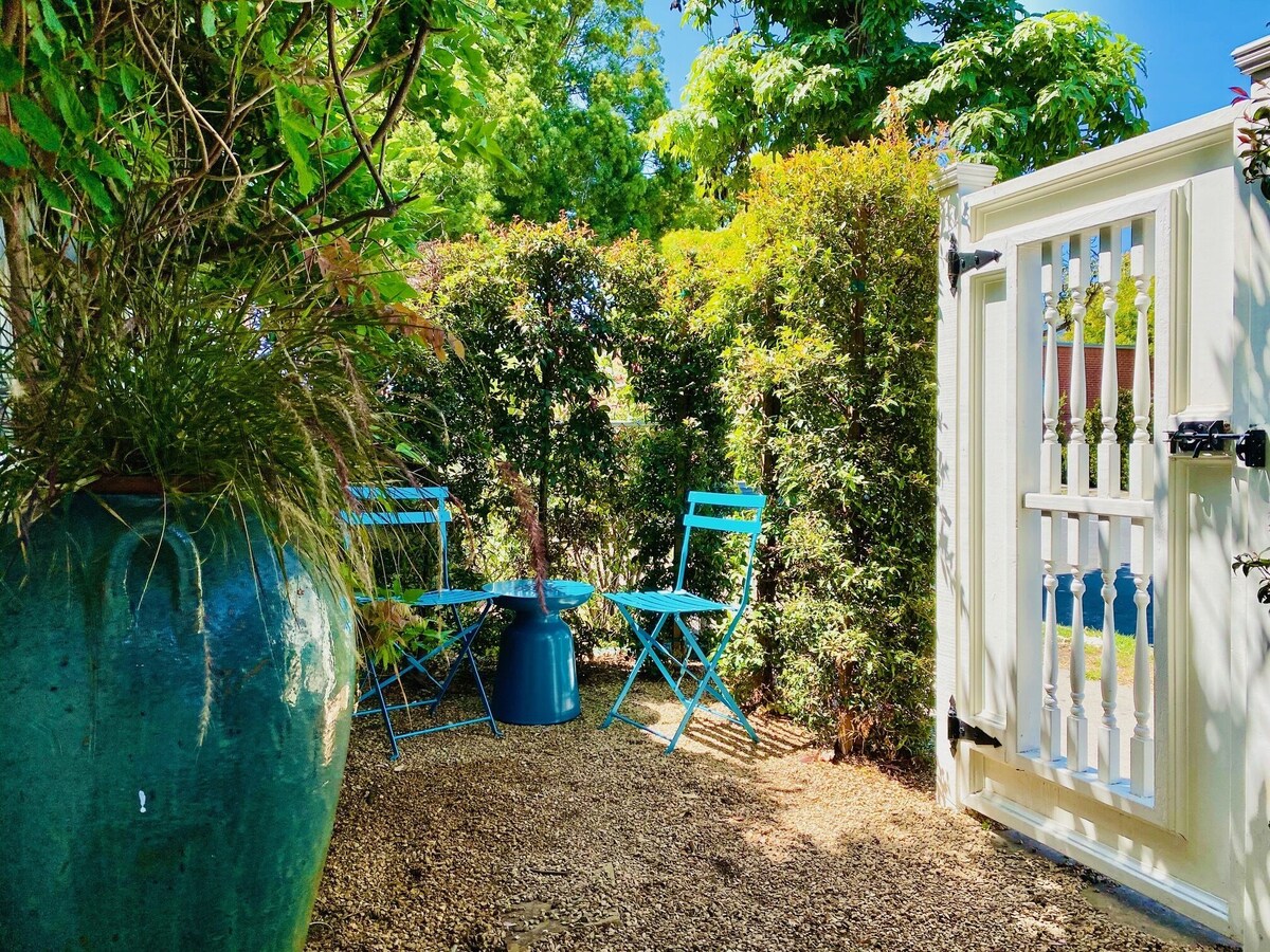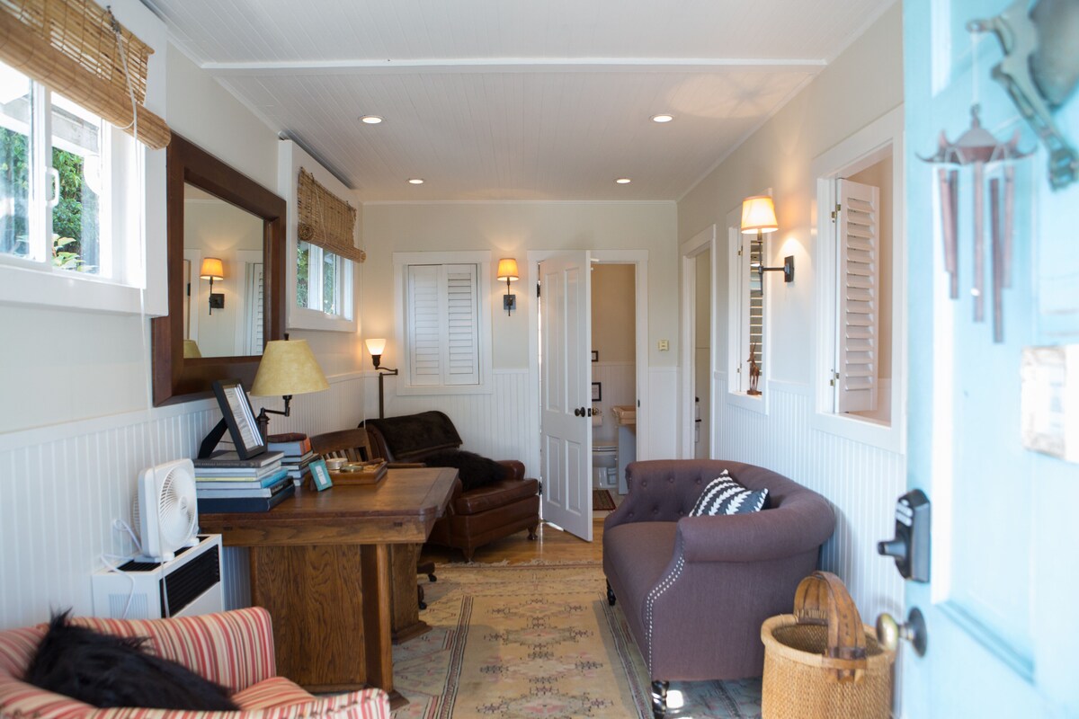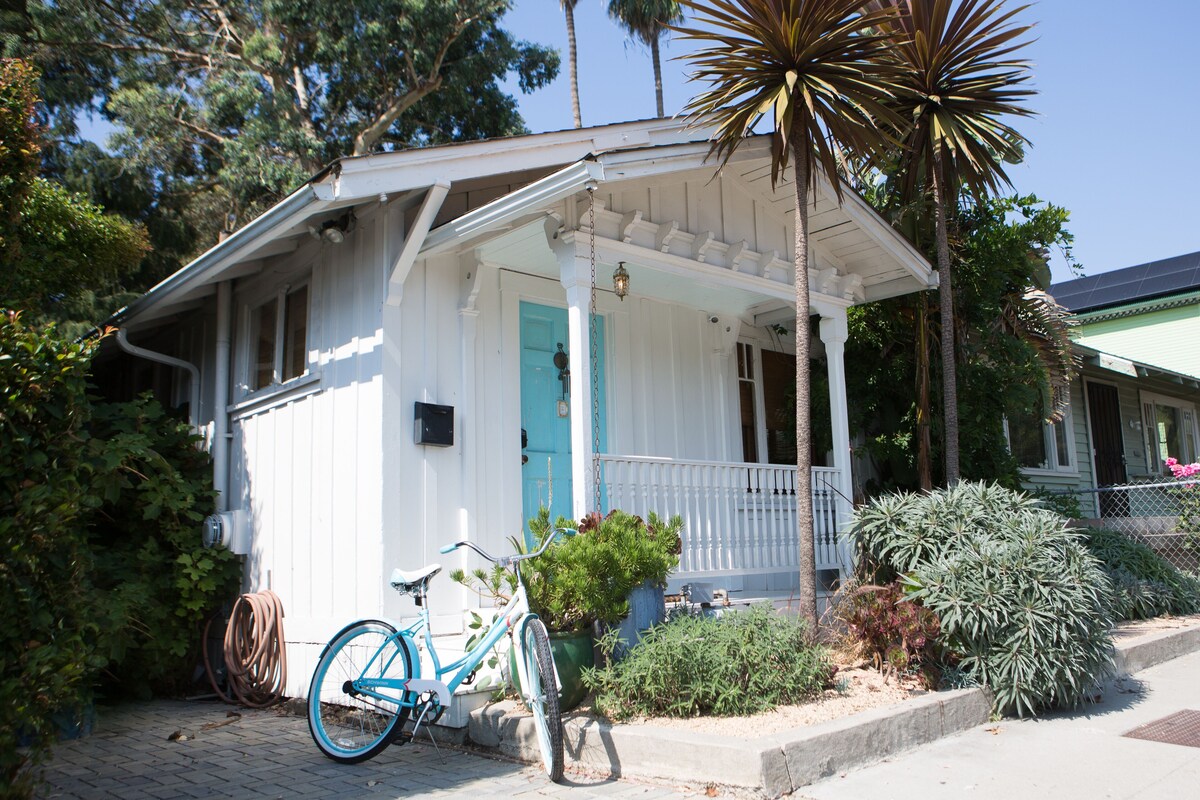 Charming and cozy little house in the heart of downtown Santa Barbara built in 1915. The rooms are small (Think Parisian Hotel for a size comparison) but well-appointed and quaint. You'll find a place to hang your hat, charge your phone, rest your fee, set your glass and simply relax. Great for guests who want to experience a genuine downtown local experience. A few blocks from the Saturday Farmer's Market. Two blocks east of State Street and Joe's Cafe (highly recommended), French Press Coffee, theaters, shopping... The back yard is the sanctuary and my favorite place to take afternoon naps under the wisteria. Because the house is in the middle of downtown, it is not as quiet as a country mouse. If you want 100% quiet, you will not want to stay here. That being said, I haven't lived in this neighborhood for many years and I have rarely been bothered by the traffic. But the house IS located on a city street and there ARE cars on this street. The parking spot in my driveway is very small. Guests have fit a Land Rover in and I fit my Tahoe in (very snugly). If you are uncomfortable backing into a tight parking space, you can park overnight on the street. There is a City lot two blocks away for longer, overnight parking for a small fee. The house is not air-conditioned. There are a few days out of the year when one might want air-conditioning, but I provide fans for the rooms and the dutch door in the front and french door in the back, as well as a few windows provide cross-ventilation on those few hot days. If you need air-conditioning, you may not want to stay here. My travels around the world have taken me to some incredible hotels and I owned and operated a yacht charter business for 12 years (as Chef, Steward, First Mate and Cruise Director), taking guests to the from the Channel Islands in five star luxury so attention to comfort is of upmost importance to me. The house is equipped with a full kitchen, quality linens, towels, comfortable rugs and furnishings, and if you've forgotten your toothbrush, razor, sunscreen, hair dryer, or shaving cream, you don't have to walk the (one block) down the street to the store. There are bicycles (and helmuts/locks) for your use, a BBQ for backyard entertaining, a Bose portable music system that connects to your music library so you can have your music in any room, a game table for an impromptu chess, backgammon, or card game, and a new TV with Netflix and Wi Fi. A few times per year, my neighbor has a party in his backyard. I never know when it's going to happen. Although they have generally been good about abiding by the noise curfew of 10 pm, I cannot guarantee that there would be some noise coming from the backyard at some point throughout the year. If that happens, a call to me and me stopping by to speak to them generally brings the noise level down! They are very respectful. They just like to have fun sometimes. Our prices include all fees. No hidden fees.