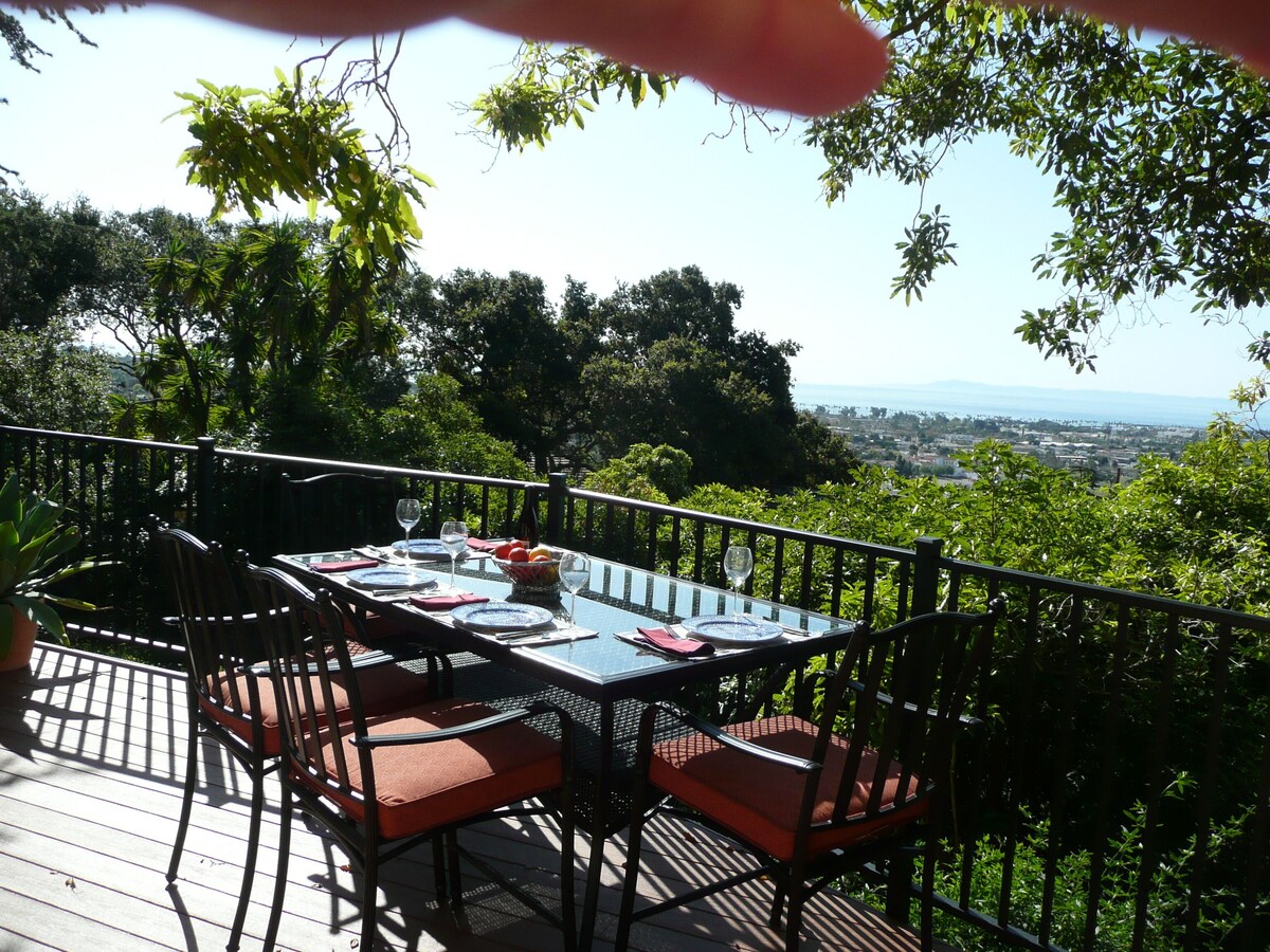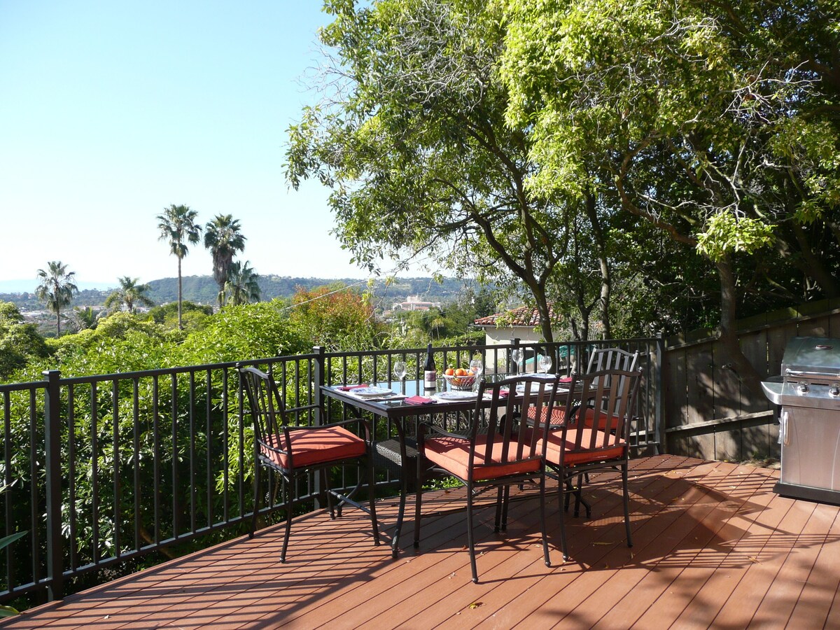 We have a completely rebuilt cottage on the Santa Barbara Riviera with a fabulous ocean view. The property has been in our family for 80 years, and we are now offering to share it for your vacation. The cottage has 2 bedrooms. It is in a park-like setting with an ocean-view deck running the length of the cottage and a separate private patio. Every detail has been taken care of. The beach is 2 miles away. Downtown is a 5 minute drive. This cottage is amazingly close to everything, yet you feel like you are away from it all. The amenities include a fully-equipped kitchen, very comfortable beds, a gas grill, 2 outside eating areas, washer and dryer, flat-screen cable TV and Wi-Fi. Linens are included. Please don’t hesitate to contact us for if you would like more information. Minimum stay is 30 days. Santa Barbara City Council made the change effective January 1, 2017. Keywords: Santa Barbara Riviera Ocean View Cottage Our prices include all fees. No hidden fees.
