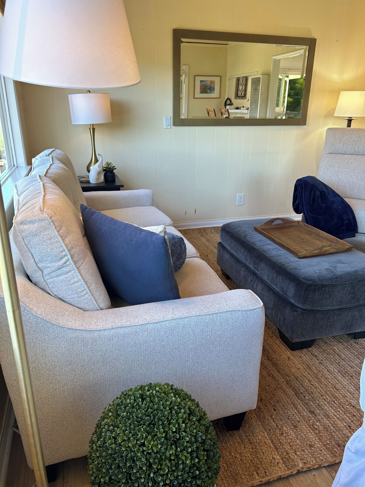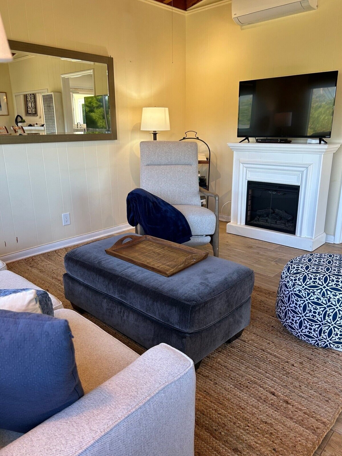 This enchanting home on the ocean side of the city has mountain and partial ocean views in a quiet neighborhood, walking distance to shops, dining and grocery and less than two minutes to downtown or one of several popular beaches. One of the most popular homes in our offering, the home is warmly decorated and includes extras such as hot tub, pack n play crib, boogie board and umbrella, kids toys and hot tub. Wi-Fi and washer/dryer included. One King, one Queen and a twin floor bed and pack n' play crib available. Beds are clothed with fine linens, comforters and pillows. Dining room seats four-five comfortably with kitchen bar seating for two. Chair mounted high chair available. Living room has flat screen TV, DVD player and movie library. Board games, tour and hiking books as well as coupons for local attractions are provided to make the most of your stay. Features: - Less than a mile to beach - Single family home. Not shared - Just over a mile to downtown Santa Barbara and State Street - Gated yard with sunset patio - Back yard with private hot tub and ping pong - Flat screen TV - DVD player and movie library - Board games - Maps and tour books - Fully stocked kitchen with more than the normal blender, toaster and coffee maker (pizza stone, muffin tins, garlic press, veggie steamer, salad spinner) - Charming architecture with built in vanity, desk, dresser drawers and vaulted ceilings Looking forward to providing your home-away-from-home here in Santa Barbara. Our prices include all fees. No hidden fees.