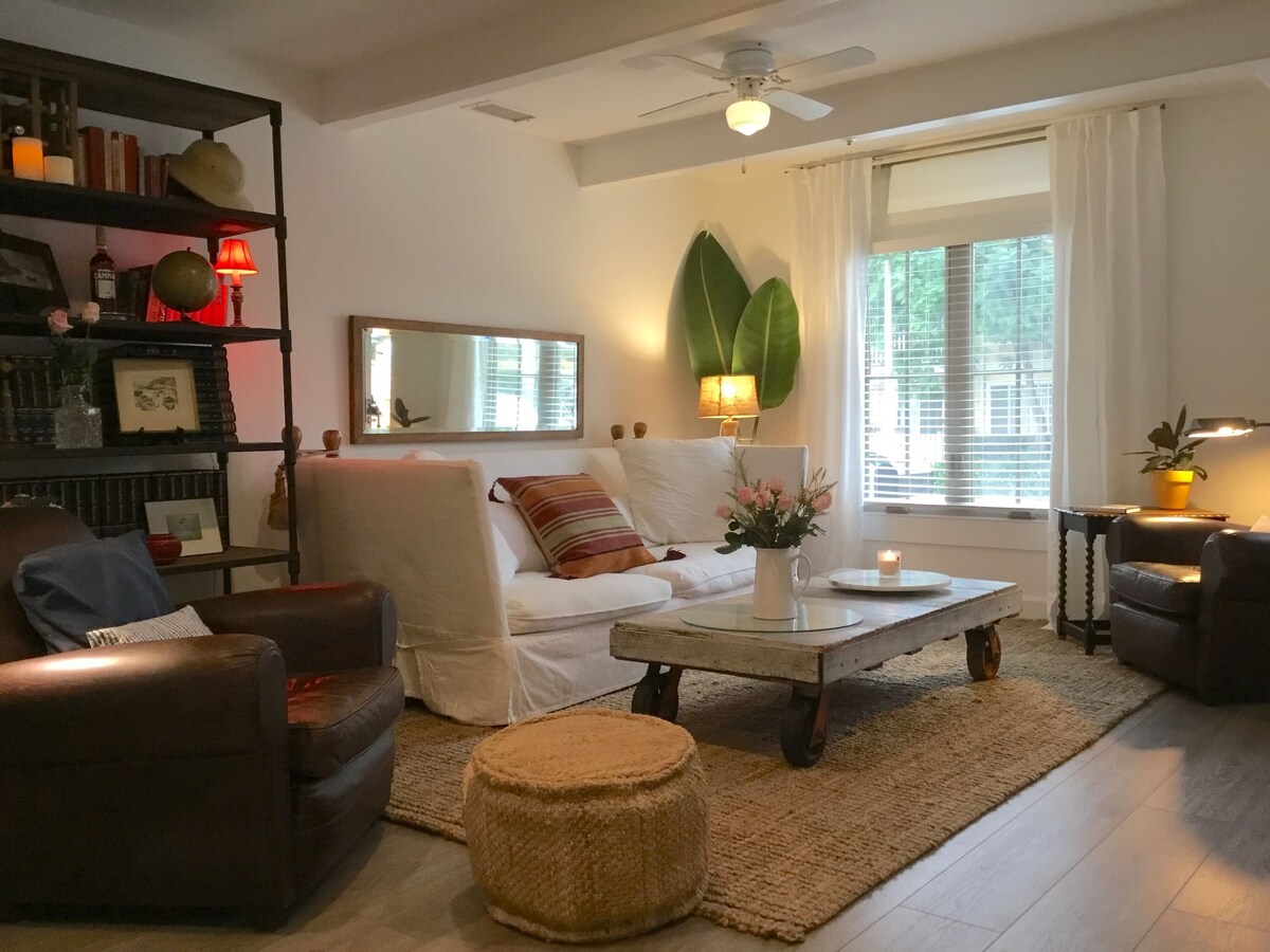 2 bedrooms, 2 bathrooms, luxury furnished townhouse in the heart of downtown. Walk to theaters, restaurants, Paseo Nuevo, State Street shops, wine tasting, music events, art walks, Funk Zone, yoga and exercise studios, grocery. 10 minute walk to beaches, Pier, Sunday markets, kayaking, Sunset cruises, whale watching, etc...