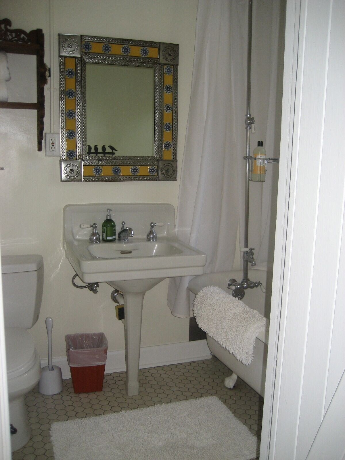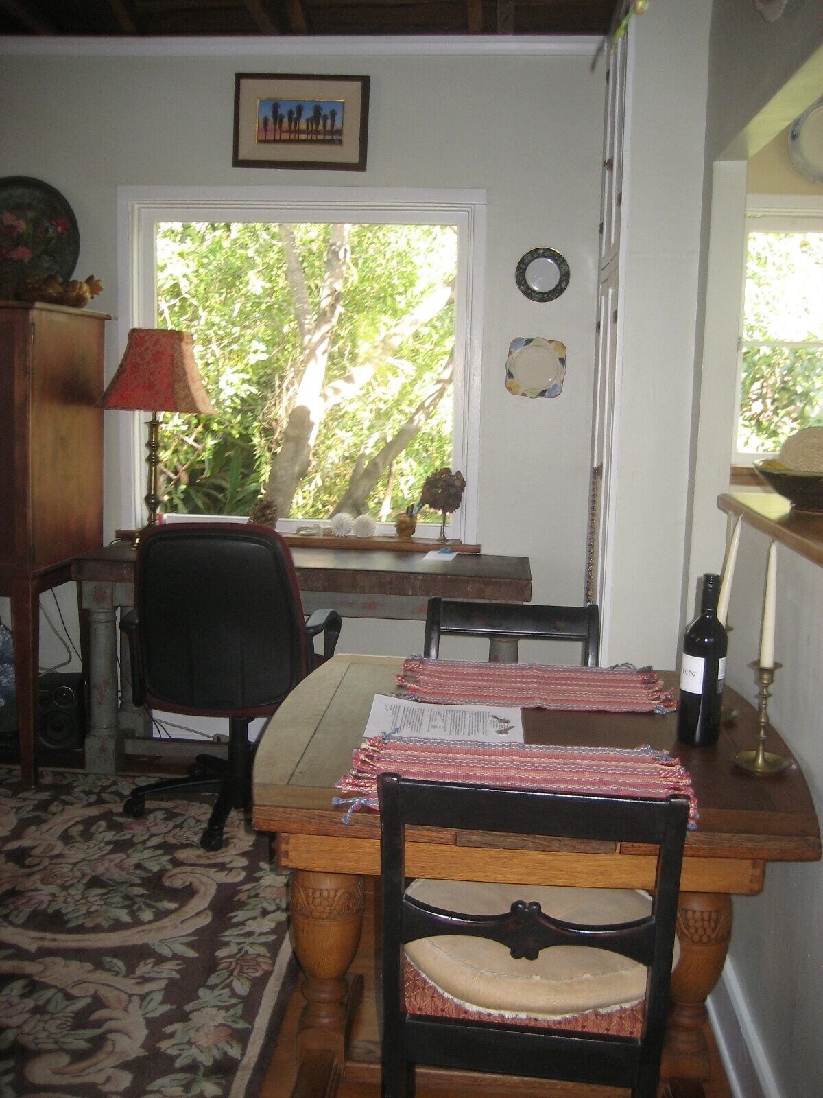 Nestled in a garden setting, this secluded, upstairs, cozy cottage features vaulted ceilings and polished wooden floor boards, tastefully decorated in an eclectic vintage style. A fully-equipped kitchen opens onto a comfortable living area, with a plush couch, large overstuffed chair an entertainment centre, and dining area with a garden view. Step into the bedroom with queen-size bed and a view of the mountains or relax in the combined claw-footed bath/shower. This charming cottage is perfect for a private retreat or as a base for your Santa Barbara getaway. Off-street parking allows one to take a ten-minute walk to Santa Barbara's vibrant downtown area, where numerous restaurants, art galleries, cinemas, boutiques, shops, and cafes are situated. Located three blocks from State Street, approximately one mile from Santa Barbara's historic Mission, approximately two miles from the beach/waterfront, 30 miles from the Santa Ynez Valley and the Channel Islands off shore, this cottage is perfectly located for your Central Coast vacation. PLEASE BE AWARE THAT THIS COTTAGE IS THE UPSTAIRS OF THE ORIGINAL CARRIAGE HOUSE and there are 19 stairs. Keywords: Cottage Our prices include all fees. No hidden fees.