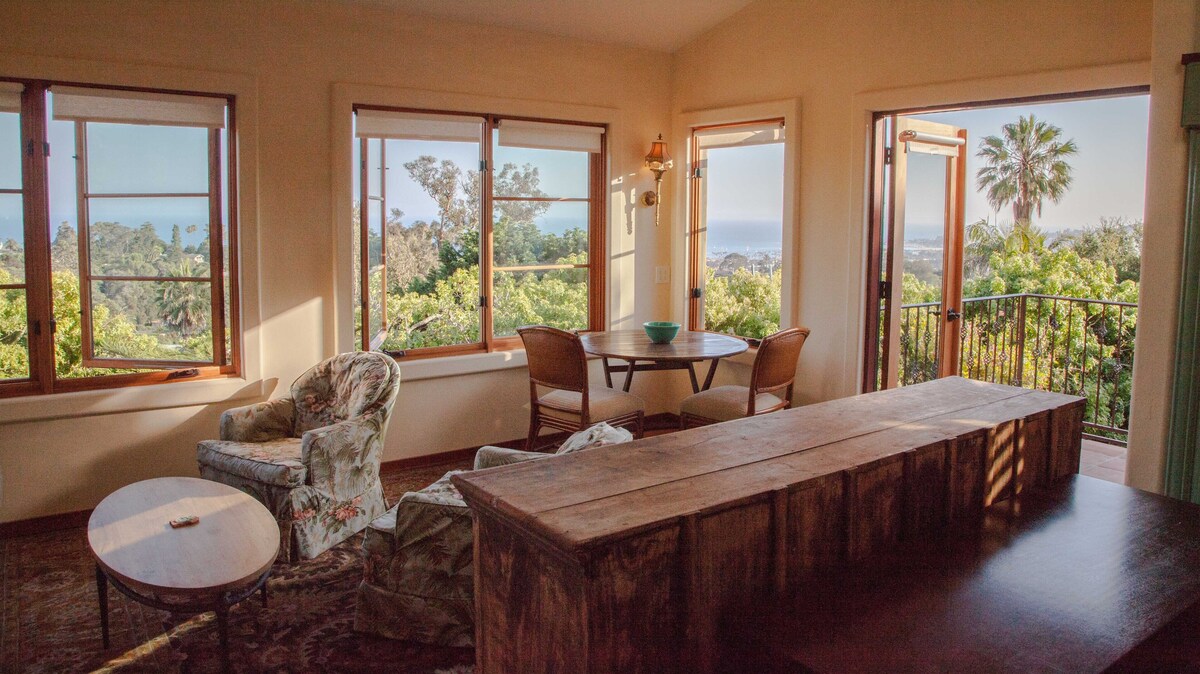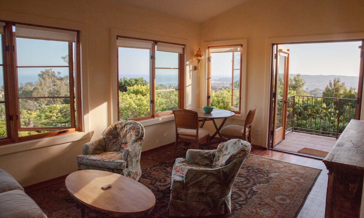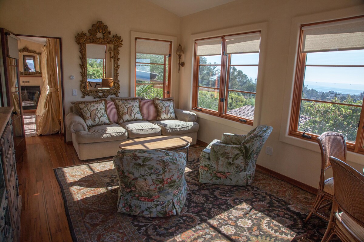A breathtaking location. Incredible ocean and island views as well as views of the town and the harbor. 700 square feet. Big living/kitchen/dining area. Viking range and oven. Big side by side fridge. Washer & dryer. Separate bedroom with fireplace. Huge bathroom with giant Kohler tub, separate shower, and makeup station. Parking on site. There are a couple of flights of stairs to get to the guest house. All rooms have fantastic views. Completed to the highest standard. A separate lovely small bonus room is also available with sofa bed. Our prices include all fees. No hidden fees.