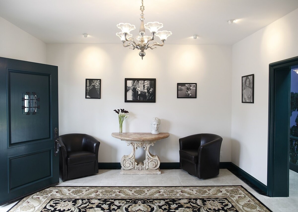 Gated luxurious oceanfront villa on 1/3 of an acre, with A/C, 2 car garage, EV charger, and fully fenced grounds. Available for three month or longer term stays. Please inquire for more details. We have had many long-term guests. A classic Italianate home, newly remodeled with Art Deco and Italian appointments, Bella Vista del Mare is a stunning, waterfront, luxury rental property overlooking the Pacific Ocean on the Mesa in Santa Barbara. Elegant European styling and modern amenities come together to bring the glamour and gracious living of a past era to life for a sophisticated clientele. This unique four bedroom, three bath single-story home sits on one-third of an acre. Picture windows and skylights throughout fill the clean, modern interior with natural light. There are ocean views from the spacious Living Room, the Gourmet Kitchen, the Dining Room, Primary Bedroom, Peacock Bedroom and Peacock Bathroom. The North Bedroom has its own private entrance. All of these bedrooms have their own bathrooms. The Studio Bedroom has its own private entrance through a private courtyard. It includes a Kitchenette with granite wet bar area, wine fridge, microwave, extensive cabinetry, and its own separate water/dryer. Adding in the Den and the Living Room, you have a total interior living space of 2,800 square feet, with ample room for up to seven guests. The house is fully stocked, and is equipped with state-of-the-art electronics and appliances. The entire property is gated, and because it is situated back from the bluff's edge, even the garden and terrace are sheltered from the windswept point where pelicans pass by. The garden is planted with native and Mediterranean plants that attract countless hummingbirds, butterflies and songbirds. With four chaise lounges and a hot tub overlooking the garden, the ocean view terrace is a quiet and lovely spot to unwind. We are now catering to stays of three months or longer and many of our guests stay for extended periods of time. Please let us know if you are interested in a longer term stay. We will try to accommodate your schedule and your budget. Seasonal rates may apply. Near the Thousand Steps Beach access, and Shoreline Park with its sweeping ocean vistas, the property is close to both Leadbetter Beach and the Santa Barbara Harbor. It is ideally situated if you are looking for any of the many coastal sports and activities that Santa Barbara is known for. If you're staying on the Mesa, a two minute drive will take you to the wide variety of shops and restaurants that are located in the Mesa Business District. Heading toward downtown, a three minute drive will take you to the start of the Cabrillo Boulevard Tourist Corridor, and a five minute drive will take you to Sterns Wharf and the Dolphin Fountain at the bottom of State Street, which is the heart of Santa Barbara. Three of the bedrooms have their own bathroom, ample closet space, a Sonos sound system, and a 'hotel' safe. The Primary Bedroom has a king-sized bed, an extensive workstation, flat screen TV, Sonos sound system, ocean and garden views, and an en suite bathroom. It is secluded at the back of the house, and has direct access to the hot tub. The Peacock Hallway Bedroom has a queen-sized bed, a Sonos sound system, ocean and garden views, and a tub in the adjoining bathroom. The North Bedroom has a king-sized bed, a flat screen TV, a Sonos sound system and a private entrance. The Studio Bedroom has a flatscreen TV, Sonos sound system, its own washer/dryer, and a Kitchenette, which includes a wine fridge, microwave, granite wet bar area, and extensive cabinetry. All of our mattresses are organic and wonderfully comfortable All three bathrooms have showers and are filled with Italian marble, ceramic tile, and modern Italian Art Deco chrome fixtures, as well as hardwood vanities and countertop stone washbowls. The Primary and North Bathrooms are equipped with lighted vanity mirrors. The Peacock Hallway Bathroom has a tub and a view of the ocean. The interior is lit throughout with chrome and crystal sconces, and a chandelier in the foyer. A jetted hot tub off of the Primary Suite accommodates up to six people. It is situated on the south-facing flagstone terrace, which overlooks the garden and the ocean, and has four chaise lounges and a large umbrella. The garden lies near the cliff's edge, yet it is fully enclosed. The outdoor dining area seats six, and has a gas grill. Three classic Schwin beach cruiser bicycles, a boogie board, beach chairs, a cooler, a beach umbrella, and beach towels have also been provided. There is a 2 car garage, and parking for three vehicles in the gated motor court. There is an EV charger in the motor court, and ample no-limit street parking is available across the street. Inside, the home is equipped with state-of-the-art electronics for entertainment and security throughout. In addition to smoke detectors throughout the house, the fire alarm system is remotely monitored 24 hours a day. There is a modern gas fireplace in the living room, and HD satellite television is available on five flat screen TVs. All of our TVs (46'- 60' in size) are 'smart,' all of our DVDs will accommodate HD and Blu-ray films, four of our satellite boxes have recording capability, and there is a small library of classic films available on DVD. We also provide high-speed internet throughout the house. The Sonos sound system (“every song on earth in every room of your house”) can play the same music or varying music, throughout the house in six different locations. It is controlled with an app on your smart phone. Three landline telephones are available to make local calls. Many board games and a small library of books are available, including several books on local attractions and Santa Barbara history. There are two large workstations: one in the Den, and one in the Primary Bedroom. The other two bedrooms also have task areas. For the health and comfort of our guests, the home is equi