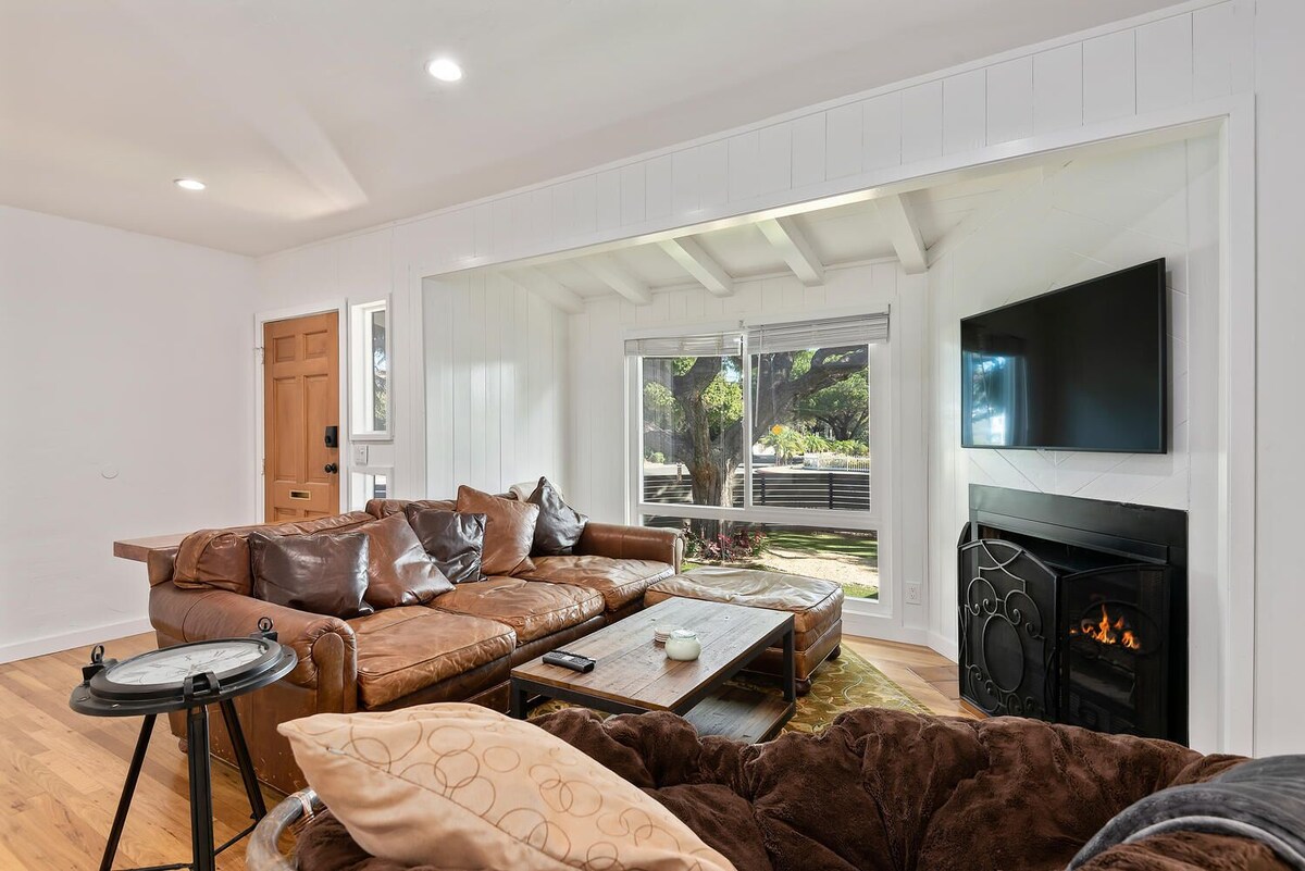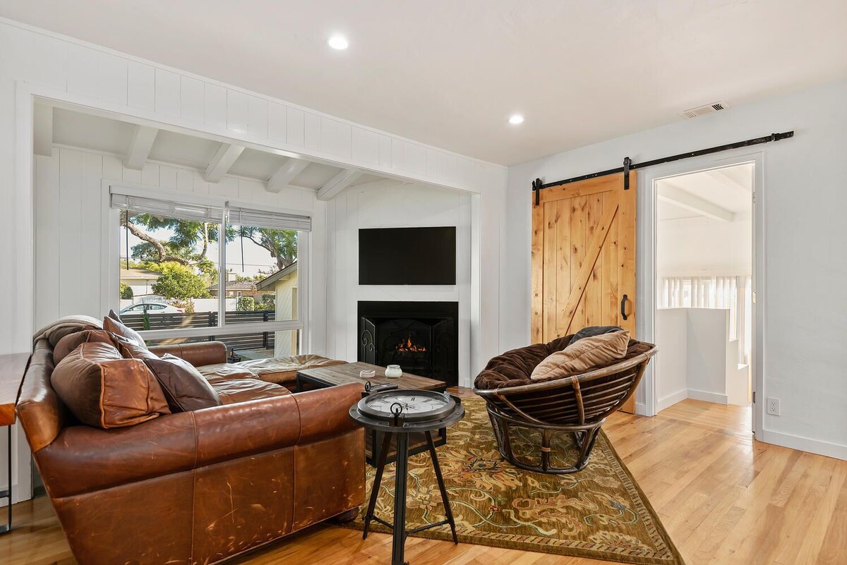 The ideal beach house only 3-5 minutes walk to popular Leadbetter Beach and 5-minute drive to downtown. This newly renovated property has a boutique hotel feel with all the comforts of home. All new furniture and amenities. Large 5-6 person jacuzzi spa in private/spacious backyard. Enclosed fencing for children and pets (by approval). 50\ ll have a difficult time leaving the comfortable chic space. The spacious corner lot is enclosed by a fence and gate structure for privacy and peace of mind especially with children and pets (by approval). The open floor design of the living, dining, and kitchen areas is perfect for sharing. Plenty of natural light and cool breeze flow through the entire home. The living room features an oversized leather sofa and ottoman and large bamboo cradle love seat. The 50" 4K HD TV includes all premium channels and is placed above the functional gas fireplace. A stunning counter height natural redwood dining table is the perfect spot for a dinner. A hallway leads to the first of two bathrooms with double vanities and bathtub. A queen bedroom and spacious king bedroom are adjacent and privately positioned. On the opposite side of the floor plan is the 3rd bedroom which has a queen bed. Adjacent is the newly renovated 4th bedroom California King suite with high ceilings, 4K TV, Alexa, and an extra mini-fridge. All furnishings are brand new as of June 2020 and each room is well lit with ceiling fans. The kitchen is stocked with premium cookware including All-Clad. High-grade dishware and preparation/presentation accessories for a delicious dinner. The backyard area features a gas fire table and a large 5-6 person spa. The space is enclosed by lush and tropical foliage that provides privacy and plenty of birdlife. The front space is anchored by a massive jacaranda tree all enclosed by the privacy/security fencing. For groups only requiring space for 6, or 3 bedrooms, we provide that set up at a slightly lower nightly rate. We do welcome pets but require disclosure and written approval. A small non-refundable pet cleaning fee will apply to guests ,