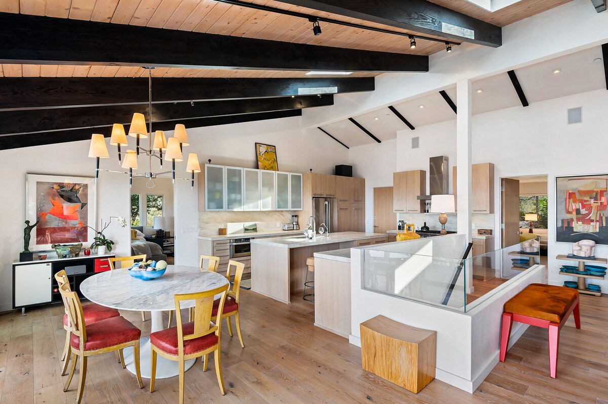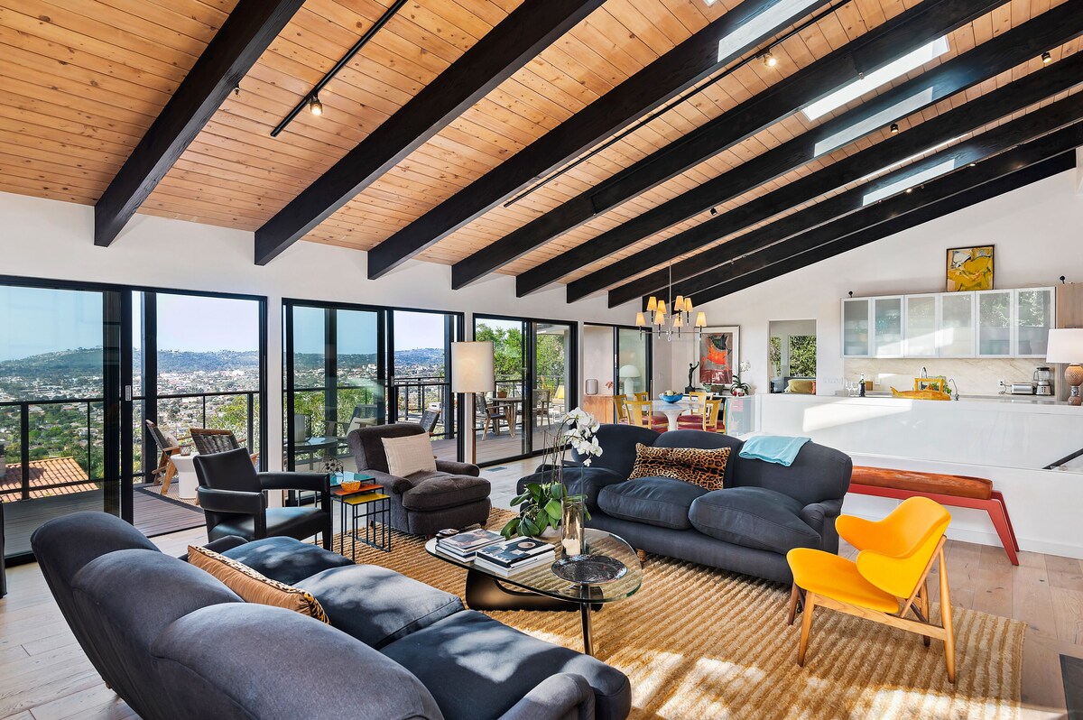 The perfect getaway...enjoy this beautifully remodeled Mid-Century modern view home at the end of a cul-de-sac. Be surrounded by fabulous artwork & attention to detail that the Interior Designer/Owner furnished this home with. Living & Dining rooms w/vaulted ceilings, a wood burning fireplace & walls of glass open to large decks looking out over the city, harbor & ocean. The best of indoor/outdoor living. Gourmet kitchen with everything you need to whip up delectable meals. Master suite with ocean views, sitting room & a luxurious master bathroom. Additional guest suite with queen bed, a full hall ba & an office on the main level. Downstairs, large guest bedroom with 2 double beds & full bathroom, multi-purpose living room/office/tv room/bedroom with attached full ba Laundry downstairs and a landing that opens up to lower level gardens and tranquil sitting areas. Invite your friends for a bbq and taking in the sunset over the ocean and city. A short distance from famed Montecito's upper village and Coast Village Road both areas offer world class restaurants, boutique shopping and the very best beaches, 7 minutes to downtown Santa Barbara and the harbor. Our prices include all fees. No hidden fees.