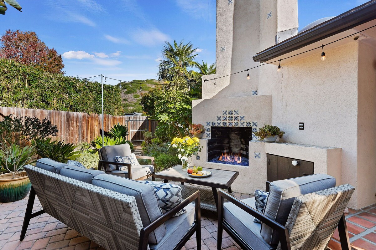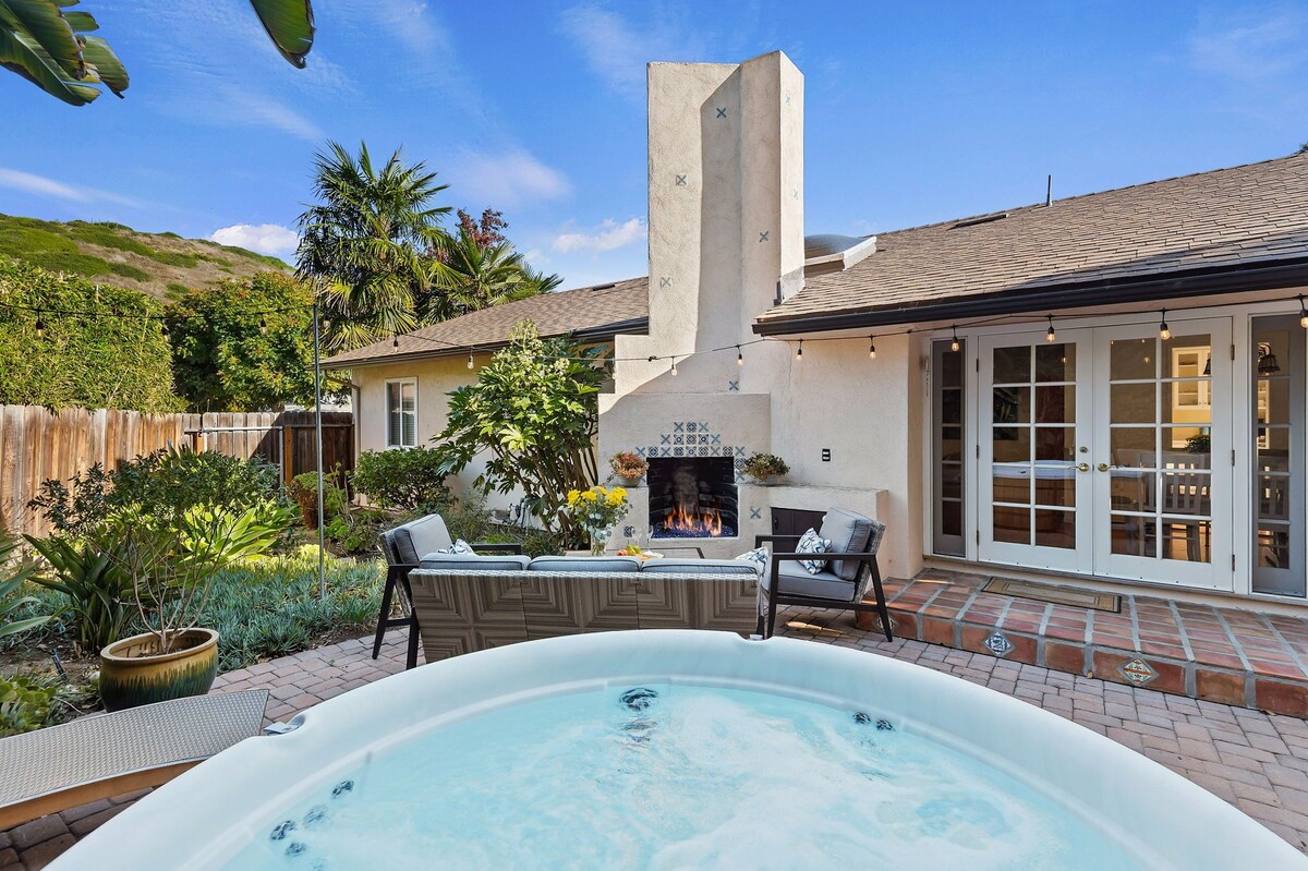 Nestled in the beloved Arroyo Burro beachside neighborhood, this 1,300 sq. ft. Santa Barbara retreat is your launchpad for coastal adventures and relaxed living. Just steps from the scenic Douglas Family Preserve and dog-friendly Hendry’s Beach, it’s the perfect home base for beach days, paragliding views, and sunset strolls. This thoughtfully designed 3-bedroom, 2-bath home also includes a versatile bonus room—ideal as an office, kids’ play space, or extra sleeping nook with a twin sleeper sofa. Inside, enjoy lightning-fast internet, smart TVs, and a fully equipped kitchen for everything from morning smoothies to sunset cocktails. One bedroom is intentionally screen-free for unplugged rest. Outside, a lush tropical backyard invites you to unwind with a private hot tub, a cozy gas fireplace framed by colorful Spanish tile, and stylish outdoor lounge seating. Whether you're dining alfresco under the palms or enjoying stargazing soaks, this space is made for memorable summer nights. The home includes parking for two vehicles in the driveway, with easy additional street parking. Smart touches and thoughtful amenities throughout make it perfect for families, couples, and small groups. We gladly welcome well-behaved dogs (sorry, no cats). With the beach and blufftop trails just around the corner, it’s a dream for your four-legged companion, too. Let us help you plan the perfect Santa Barbara getaway—from local eats and farmer’s markets to wine country adventures and sailing excursions. Come live the laid-back coastal lifestyle—your summer starts here. Our prices include all fees. No hidden fees.