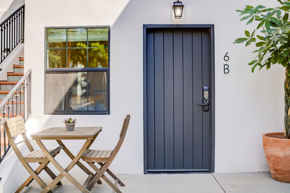 ## Space Immaculately renovated modern downstairs efficiency studio, one door down from State Street. Enjoy the Samsung split cooling and heating system for ultimate comfort. Includes a flat-screen smart TV with streaming, casting, or Airplay features. A private bath with a rain shower, kitchenette with Nespresso, microwave, mini fridge, and a patio with bistro set complete this uniquely appointed stay in Santa Barbara. *In an effort to support sustainable tourism and reduce our carbon footprint, we provide Public Goods toiletries, compostable sponges, trash bags, and green cleaning products.* NOISE DISCLAIMER: This unit is below an upper unit. It is possible to hear noises coming from above you. We notify the upstairs guests of this and let them know to please be respectful of their noise level to not disturb downstairs guests. Should you have any issues with this, please call our dedicated hospitality line and we will reach out to the guests above to remedy the situation immediately. *NO PARTIES: We have a strict 'No Party' policy-parties or events are not allowed. Quiet hours are enforced from 10 pm to 8 am.* *PETS: ONLY 1 PET ALLOWED (N/A to service animals, applicable to ESA's). A pet fee will apply; pets can not be left unattended in your room. Please add your pet to the reservation, or disclose your pet to our hospitality team after booking. Street parking only. *Our cleaning fee includes a professional cleaning of the house and outdoor space. As part of The Living Wage Pledge, we are committed to paying our cleaners fairly. A living wage is a minimum income necessary for someone to meet their basic needs and participate in their community.* ## Access This is a self-serve stay. We provide contactless self-check-in. The doors are all equipped with smart locks, a unique code will be generated and sent to you on check-in day. This complex does not have live TV service. All TVs are equipped with apps (Netflix, Hulu, YouTube TV, and Amazon Video) for your streaming pleasure. The unit has fast wifi. ## Interaction This is a self-serve stay. We are off-site hosts; there is no front desk or office, and we provide contactless self-check-in. We have a dedicated hospitality phone line in case of emergencies (24/7) and our team is available on call, text, or chat during 5 am - 1 am to help assist you during your stay! ## Neighborhood Located within walking distance to nearly all offices and retail stores on the State St corridor, 20+ tasting rooms, 10+ breweries and countless choices for eating or drinking make this an ideal location for anything that may bring you to the world-renowned Santa Barbara Coast. ## Transit Santa Barbara Transit Center is 7 blocks away. ## Notes For security, there are 4 cameras on the exterior of the building. *There is a 4% processing fee for all refunds on bookings made on our direct websites, Booking.com, Vrbo, and Expedia.* Our prices include all fees. No hidden fees.