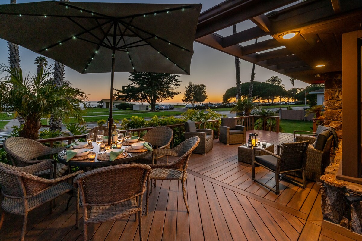 Ocean Views from the Heart of Santa Barbara 3 BEDROOMS | 2 BATHROOMS | 6 GUESTS There isn't a more lovely location to experience Santa Barbara’s beauty than from Bluewater Retreat, a premier offering from Paradise Retreats. Perfectly situated across from the stunning Shoreline Park, you'll be steps from a quaint coastal walk, a path down to the beach, and a short stroll from several beachside cafes and many restaurants at the Harbor. This is the ideal spot to chill and soak up the surfside beauty. This three-bedroom, two-bathroom home, a highlight of Paradise Retreats' collection, features large bay windows in the Living Room to keep your focus on that mesmerizing ocean view, complemented by a central stone fireplace. The Primary Suite boasts a walk-in closet and an ensuite bathroom with a vintage step-down jacuzzi tub. The private backyard is complete with a hot tub, lounge chairs, and a lush tropical garden. The front patio is the perfect location to watch the July 4th fireworks, sailboat regatta, and breathtaking sunsets over the Channel Islands from the comfort of your own space! HIGHLIGHTS: - Wrap-around porch with ocean views - Steps to cliffside park and beach - Private backyard hot tub FAQ's: - Cancellation Policy: See \ tab above - Property Address: Available after reservation confirmation - TV's: 55\ (1) - High Speed WiFi: YES - Coffee Maker: K-Cup - Pet Policy: Call us! - Bedroom/Bathroom Details: See \ tab above - Parking Max: 4 Cars (Garage-2 / Driveway-2 / Street-Limited) - # of King Size Beds: 1 - Air Conditioning (A/C): NO (portable fans available) - Party Rentals/Hosted Events: Prohibited **GUEST AGREES TO ELECTRONICALLY SIGN OUR RESERVATION AGREEMENT within 2 days of booking. (Emailed to Guest upon booking.)** POLICIES: - Minimum Age of Primary Guest: 30 years or older. - Quiet Hours: 9:00pm-9:00am. Please respect our neighbors. - No Smoking on Property. - Pet Policy: Call us! - No Party Rentals or Hosted Events. - Check-in: 3:00pm or later. - Check-out: 10:00am or earlier. - Manager/Homeowner Reserves the Right to Deny Reservation. - Until Confirmed, Rates are Subject to Change. Please note: We require an eSigned short-term rental agreement before finalizing your reservation. Pets may be considered at this home but require written authorization and additional fees. Our prices include all fees. No hidden fees.