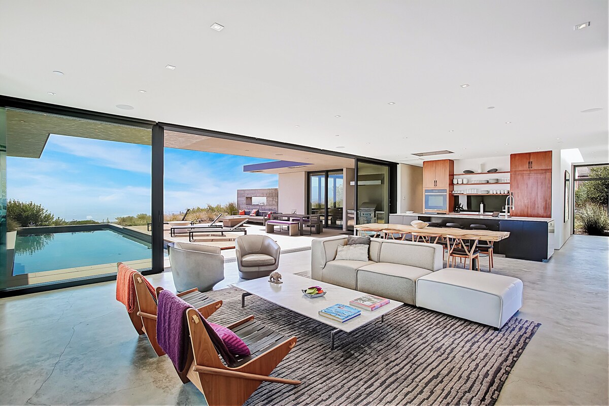 Perched on a private hilltop at the base of the Santa Ynez Mountains, Above it All is a one-of-a-kind, award-winning 3BR/3BA estate designed to immerse you in beauty and tranquility. As featured in DWELL magazine, this architectural masterpiece offers sweeping views of the Pacific Ocean and rolling hills, setting the stage for a truly unforgettable Santa Barbara escape. Walls of glass flood the home with natural light and frame breathtaking vistas from nearly every room. The sophisticated living area features a sleek indoor-outdoor fireplace and flows seamlessly into the chef’s kitchen, where high-end appliances and a Miele espresso machine elevate your daily rituals. A hand-carved wood dining table seats ten—perfect for lingering meals with family or friends. Each of the three en-suite bedrooms offers privacy and comfort, with spa-inspired bathrooms and premium finishes throughout: • Two suites feature California king beds, gas fireplaces, smart TVs, and private patios. • The third suite includes a queen-sized sofa sleeper and large smart TV—ideal for older children or extra guests. Step outside to enjoy the true magic of this property. Soak in the cliffside hot tub, swim in the heated pool (optional daily heating), and unwind in beautifully designed outdoor spaces for lounging, dining, and gathering. Fire up the gas grill, enjoy sunset dinners on the terrace, or cozy up by the outdoor fireplace or fire pit under the stars. Additional Amenities Include: • High-speed Wi-Fi and smart TVs • Air conditioning (mini-split systems + sliding glass doors for natural airflow) • Full laundry room • Driveway parking for three vehicles • Local host greeting upon arrival for a personalized check-in Conveniently located near beaches, wineries, hiking trails, and downtown Santa Barbara, Above it All offers both peaceful retreat and easy access to the best of the Central Coast. Whether you're planning a family getaway, celebrating a milestone, or simply craving a luxurious escape, this hilltop haven delivers in every way. Reserve your stay today and experience the unmatched serenity, design, and natural beauty of Above it All. Our prices include all fees. No hidden fees.