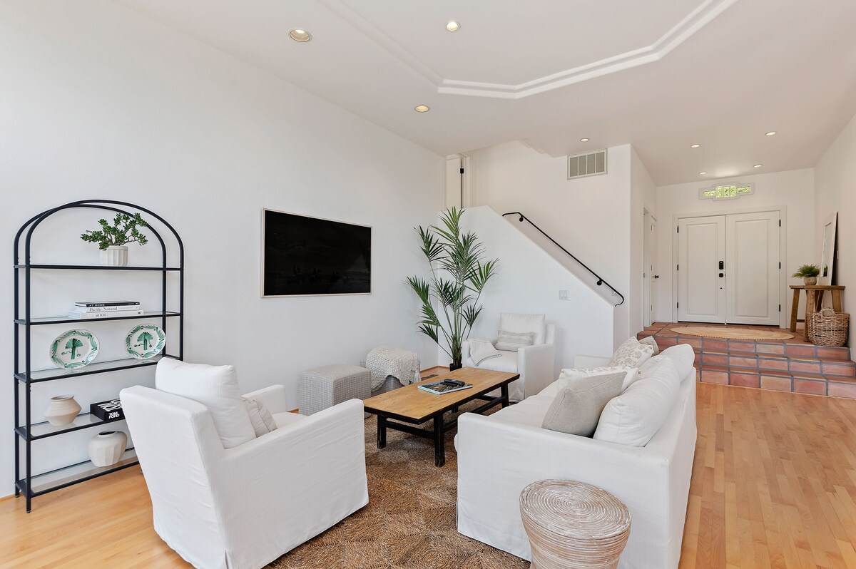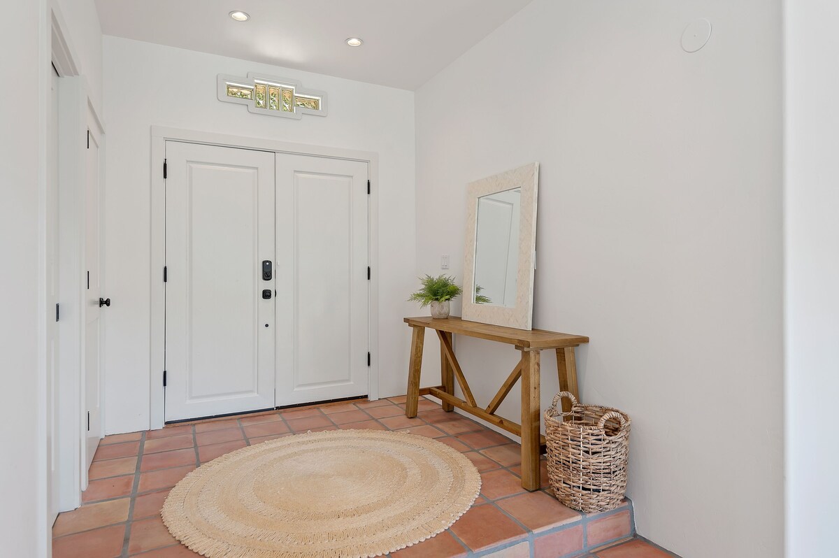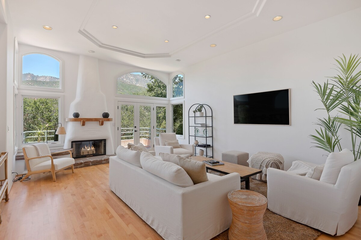 Escape to Santa Barbara Hideaway, a beautifully renovated 5-bedroom Mediterranean-style estate offering privacy, luxury, and sweeping ocean views. Located minutes from the beach, Montecito, and downtown, this custom home features two spacious primary suites—each with king beds, fireplaces, and spa-style baths. The top-level suite includes a private living room, kitchen, and wraparound balconies. The chef’s kitchen, complete with a 6-burner range and espresso machine, opens to bright, elegant living and dining spaces. French doors lead to multiple outdoor terraces and a private fire pit patio, perfect for evening relaxation. Additional guest rooms provide flexible sleeping arrangements, ideal for families or groups. Enjoy modern comforts like Sonos sound, Peloton bike, smart TVs, and peaceful indoor-outdoor flow. Whether you're savoring a sunset from the balcony or exploring nearby beaches and wine country, Santa Barbara Hideaway is the perfect base for a refined coastal escape. Pets welcome (dogs only). Let us help you plan a truly memorable stay! Our prices include all fees. No hidden fees.