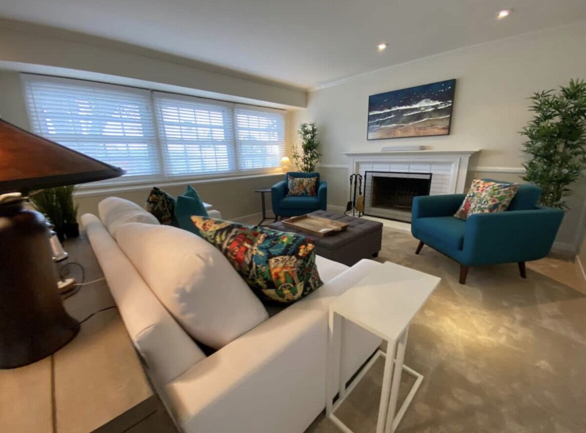 Office/bedroom with Zoom conferencing workstation, dual monitors + webcam + Sonos connected sound system thruout. Wifi 6 mesh network, super fast Gigabit. Lush backyard with 10 person hot tub, outdoor dining w/ heater, fire pit.