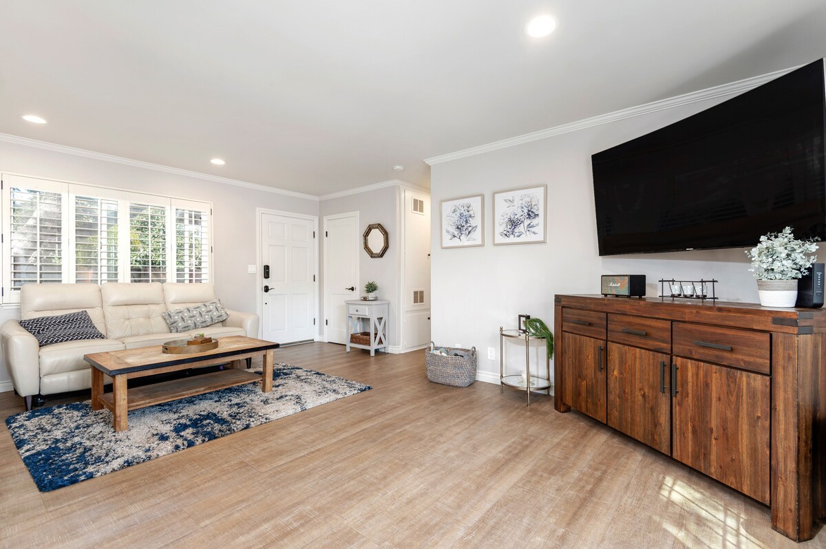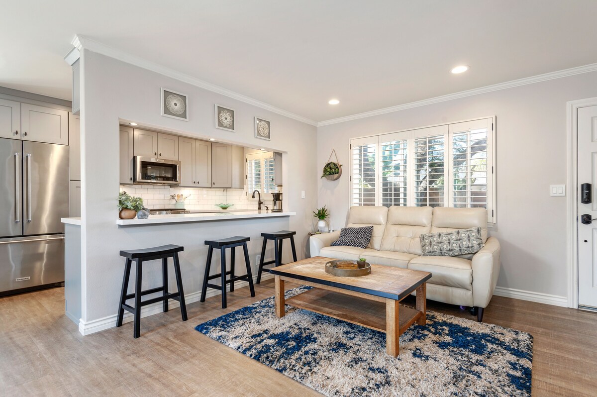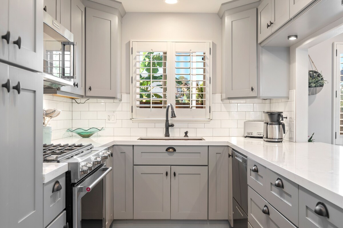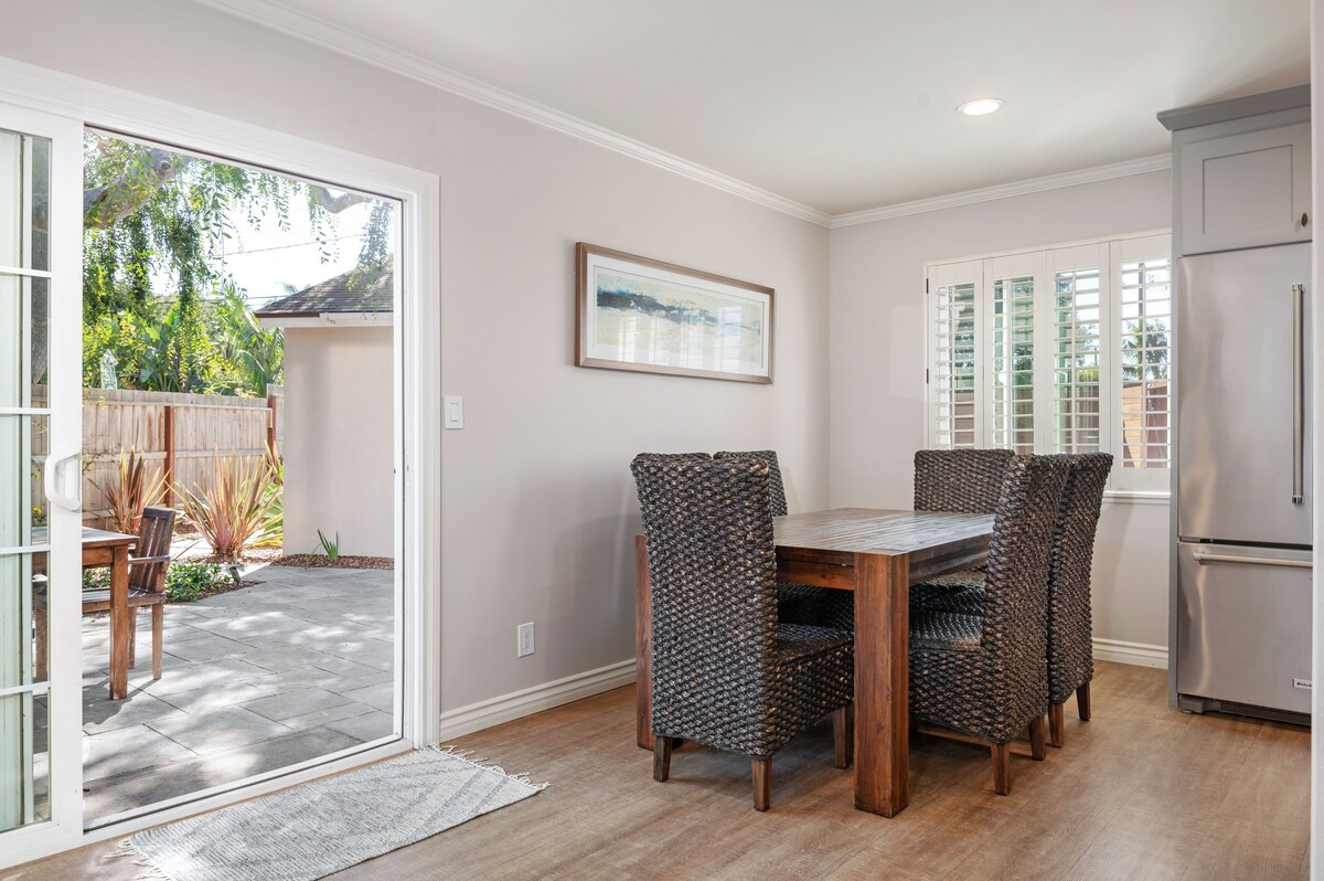 Escape to Mesa Jewel, a charming 3-bedroom home nestled in Santa Barbara’s peaceful Mesa neighborhood—just a short walk to the beach and the scenic Douglas Family Nature Preserve. This comfortable, family-friendly retreat features a spacious fenced yard with a private hot tub, turf play area, and outdoor dining space with a propane grill—ideal for soaking up sunny afternoons and enjoying dinner under the stars. Inside, the home offers a laid-back California vibe with three cozy bedrooms, including a king-sized primary with an en-suite half bath and two guest rooms with queen beds. A full hall bath with a bathtub is perfect for families with young kids. The kitchen is fully equipped for easy meal prep, while the open layout makes gathering with loved ones a breeze. Additional perks include garage parking, space for two more cars in the driveway, ample street parking, and fast Wi-Fi. Well-behaved dogs are welcome (sorry, no cats). Whether you're hiking nearby coastal trails, exploring downtown Santa Barbara, or just relaxing at home, Mesa Jewel is your perfect base for a memorable stay. Our prices include all fees. No hidden fees.
