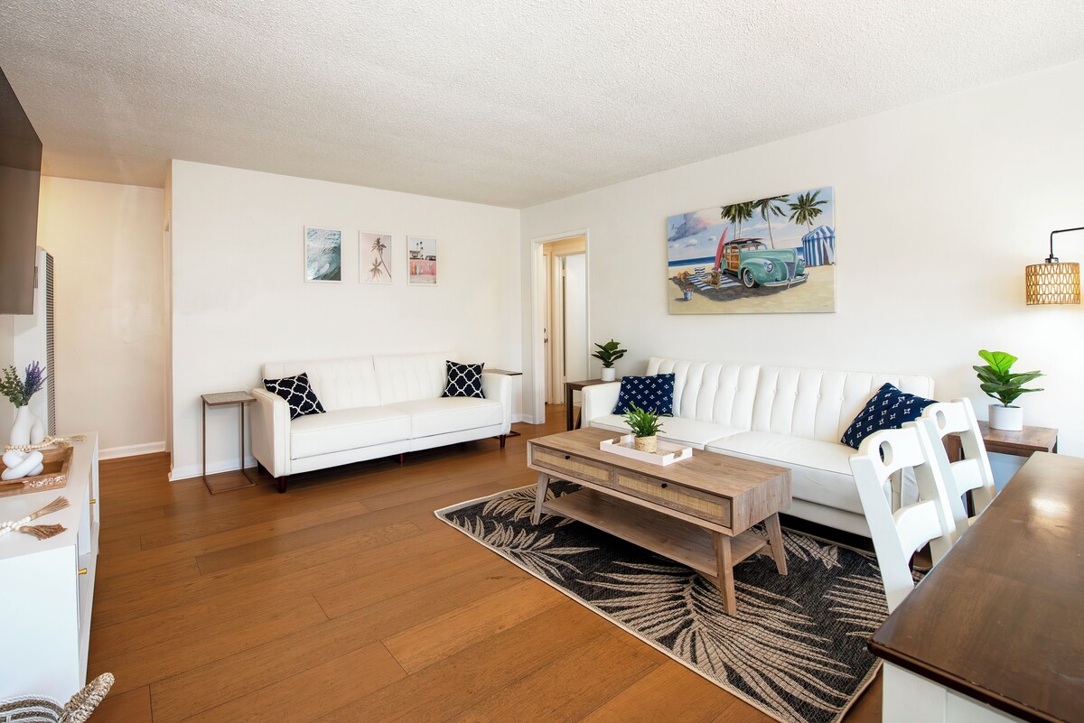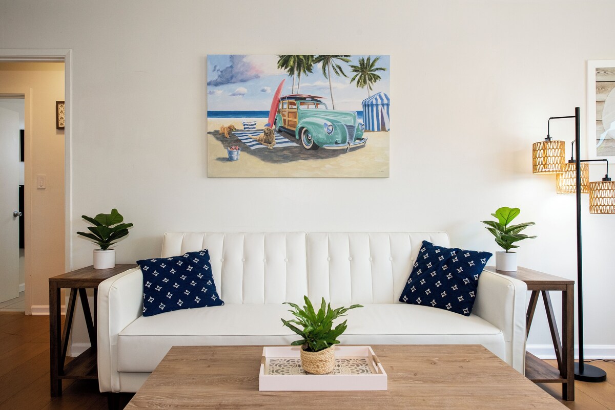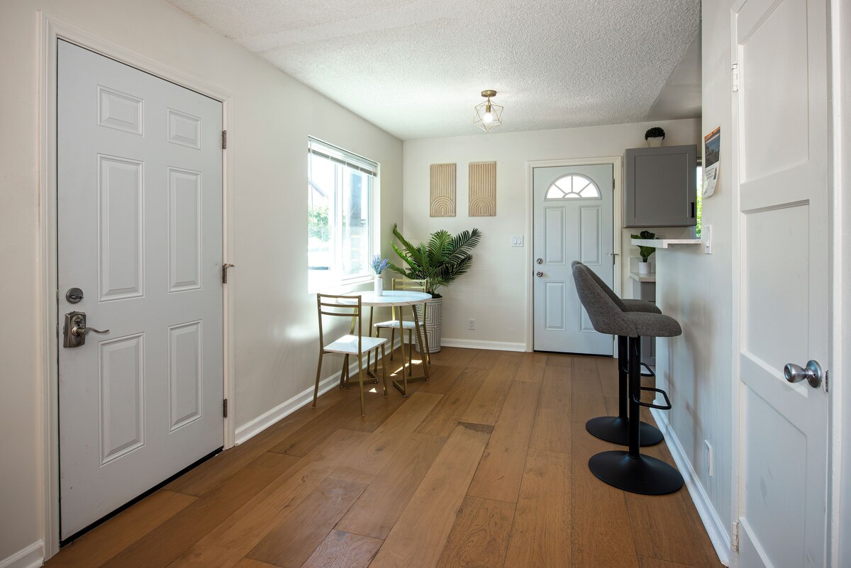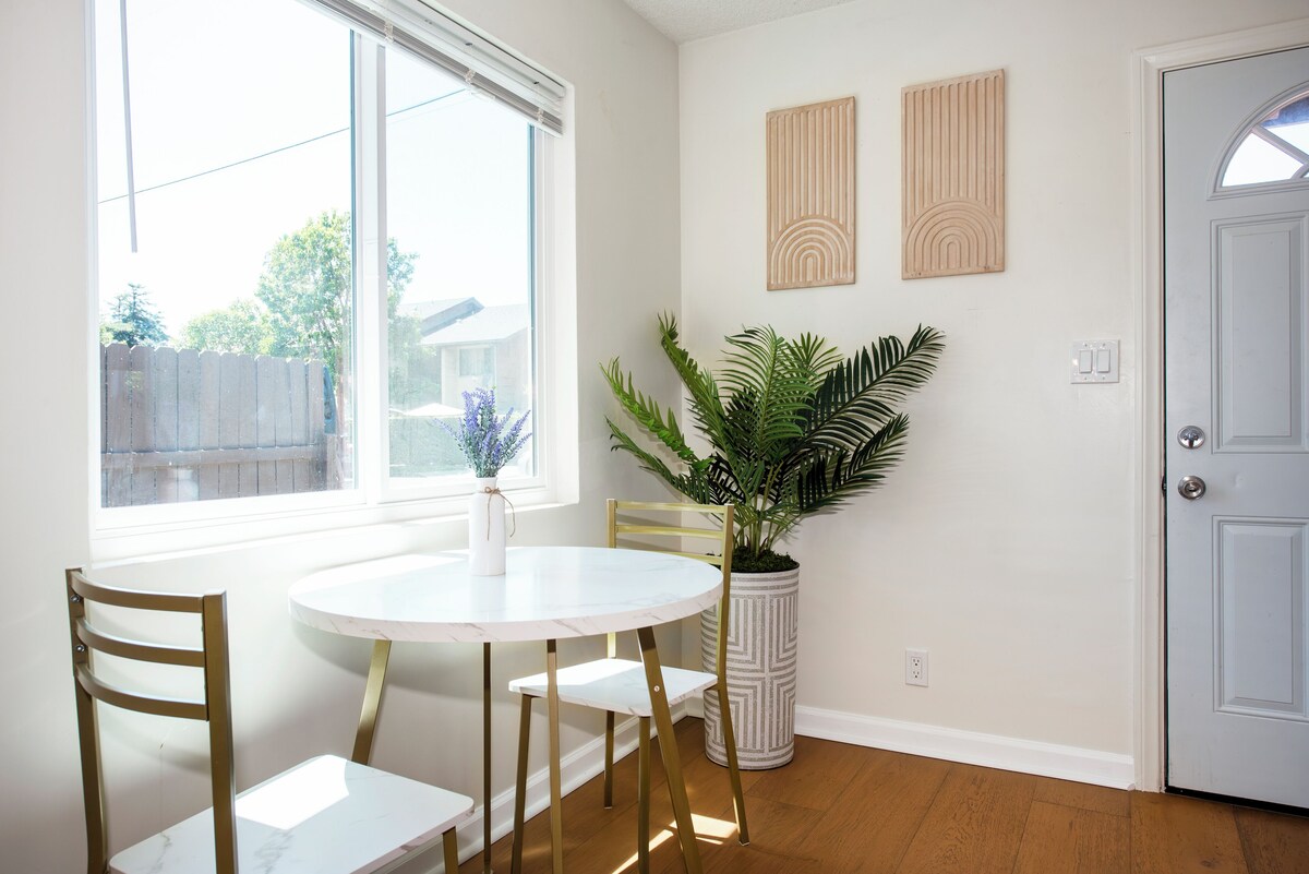 Enjoy the convenience of location as well as the luxury of space in this 3 bedroom coastal retreat. Perfect for families, groups, or furry friends, the house is located just a quick drive away from the Funk Zone, State Street, the Santa Barbara Zoo, and the beach. Grab a bite in Montecito or stay in and enjoy the full kitchen and dining table for 6. The space: The property is close to the beach but walking is not suggested due to it being inland of the freeway. Downtown is about a mile away. The house is a full 3 bedroom, 2 full baths, and 1200sqft, which is a luxury in Santa Barbara. There are two rollaway beds, a washer/dryer, and two flat screen smart TVs for your use. We can also provide a baby crib in the unit, if requested prior to check-in. Guest access The entire house is yours! There are two fully fenced areas in the front and side of the house with bistro tables to enjoy a meal on. The driveway is all yours and can fit up to 3 cars if you park close together. Other things to note: There is no dishwasher in the unit--sorry! There are ceiling fans for each bedroom, and a forced air heater for the winter. Additionally, please note the location is in very close proximity to the highway. The property is located near the freeway and there is a slight road noise when outside. Our prices include all fees. No hidden fees.