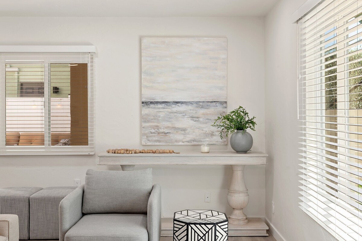 A \ conjures up images of laying under a shady umbrella on plush towels while sipping on a tropical cocktail...an ideal place to relax while on vacation, right?! Our \ is a two-bedroom, two-bathroom downstairs unit in a completely renovated triplex that won't disappoint! With an open floor plan and fresh renovated style, the living, dining, and kitchen areas become a communal hub for guests to cook, watch TV, mix up a tropical drink, and hang out effortlessly. Perch on a bar stool at the granite center island to stay close to the culinary action in the kitchen, or enjoy a quick snack before heading out to the beach with boogie boards, beach chairs and umbrella in tow...all provided! In the primary bedroom, stream a favorite movie on the flat screen tv while sinking into a comfy queen-size bed. The shower in the en-suite bathroom adds a touch of luxury with a rain shower head and a hand-held sprayer. In the second bedroom, fall into the king-size bed when the day is done, watch a bit of television, or doze off and dream about what tomorrow holds. And if the phone charger didn't make it into the suitcase, there are multi-charging cables on both bedside tables for various devices. How smart! Fine linens and plush, fluffy towels make it extra special. A signature highlight is the large outdoor patio, where bistro lights illuminate a comfortable space to be outside to enjoy the mild Santa Barbara climate. There is a Weber propane grill, dining for eight guests, a seating area, and a bit of shade for those warmer days. With deliberate intent to maintain that indoor-outdoor mood, the patio is a true extension of the home. This patio is for the exclusive use of Coastal Cabana guests, not shared by the other units. As is typical with many Santa Barbara homes, this property does not have AC. Open windows and the use of fans allow ocean breezes in to keep the house cool during hot summer months. A short walk will put visitors front and center on West Beach and Cabrillo Boulevard. Be sure to walk to the Funk Zone for world-class wine tasting, live music, novelty eateries, and unique boutiques. The Harbor lights are soothing after sunset, try a tart margarita at Brophy's, or buy the local daily catch at Santa Barbara Seafood Company and bring it back for a heathy meal at home. There is so much, nearby. Have a larger group? There are two more units in this triplex. As mentioned, the three-bedroom, two-bathroom upstairs unit is Coastal Breeze. Coastal Palm is a three-bedroom, two-bathroom townhouse. Each unit has its own patio or terrace to enjoy. It's a cool collective to call home for a weekend getaway, or stay as long as you like! Choose one, choose all....but always have fun! Our prices include all fees. No hidden fees.