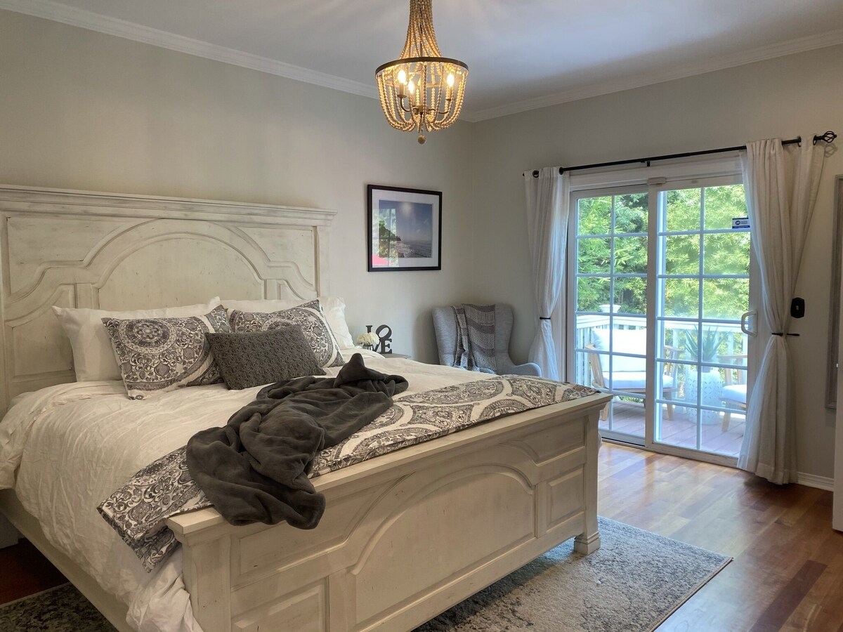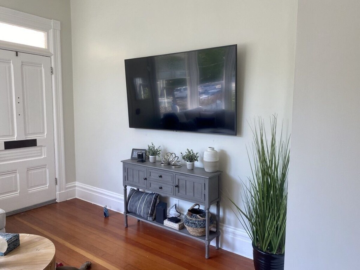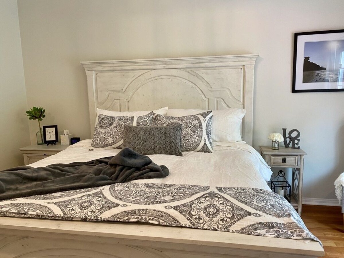 Tree-lined downtown location, pristine with high ceilings and elegant trimmings This perfectly positioned and well cared for Victorian is stunningly beautiful inside and out and well-positioned in a quiet, tree-lined downtown neighborhood. Being located on a dead-end street, there is little traffic noise during the day and almost non-existent noise at night, making it one of the more coveted downtown respites. This beautiful Victorian Bungalow, built in 1890 and fully renovated a few years back with no detail missed, includes AC, a main bedroom with en-suite bath, walk-in closet and vanity and a second bedroom with great light. Just blocks from the Public Market and the new car-less State Street Promenade and fifteen minute walk to the beach (Stearn's Wharf and Marina too) you won't need a car. The home features a king, queen, twin and two twin foam floor beds adorned with fine linens and comfortable beds. The front covered porch with bench swing is a treat for morning coffee or tea or lazy afternoons reading or visiting with loved ones. The gated back yard is petite yet well-planned. The back yard is both private and very lush with a tall border of lush greenery to provide a cozy location for private conversation with loved ones, a meal, gaming or reading, Two cozy arm chairs are perched just above the back yard. The lower elevation (few steps) includes outdoor dining, bench and BBQ. Two baths (one for each bedroom) feature brand new tile, shower and shower/tub combos. High ceilings create a feeling of elegance and space and bring history into the home. The living room boasts a comfy couch w/chaise, flat screen TV and room for games or chatting. The dining room is set for six but can accommodate an addition two guests if needed. We love this home, one of the favorites in our collection, and know you will love it too! We look forward to welcoming you. Our prices include all fees. No hidden fees.