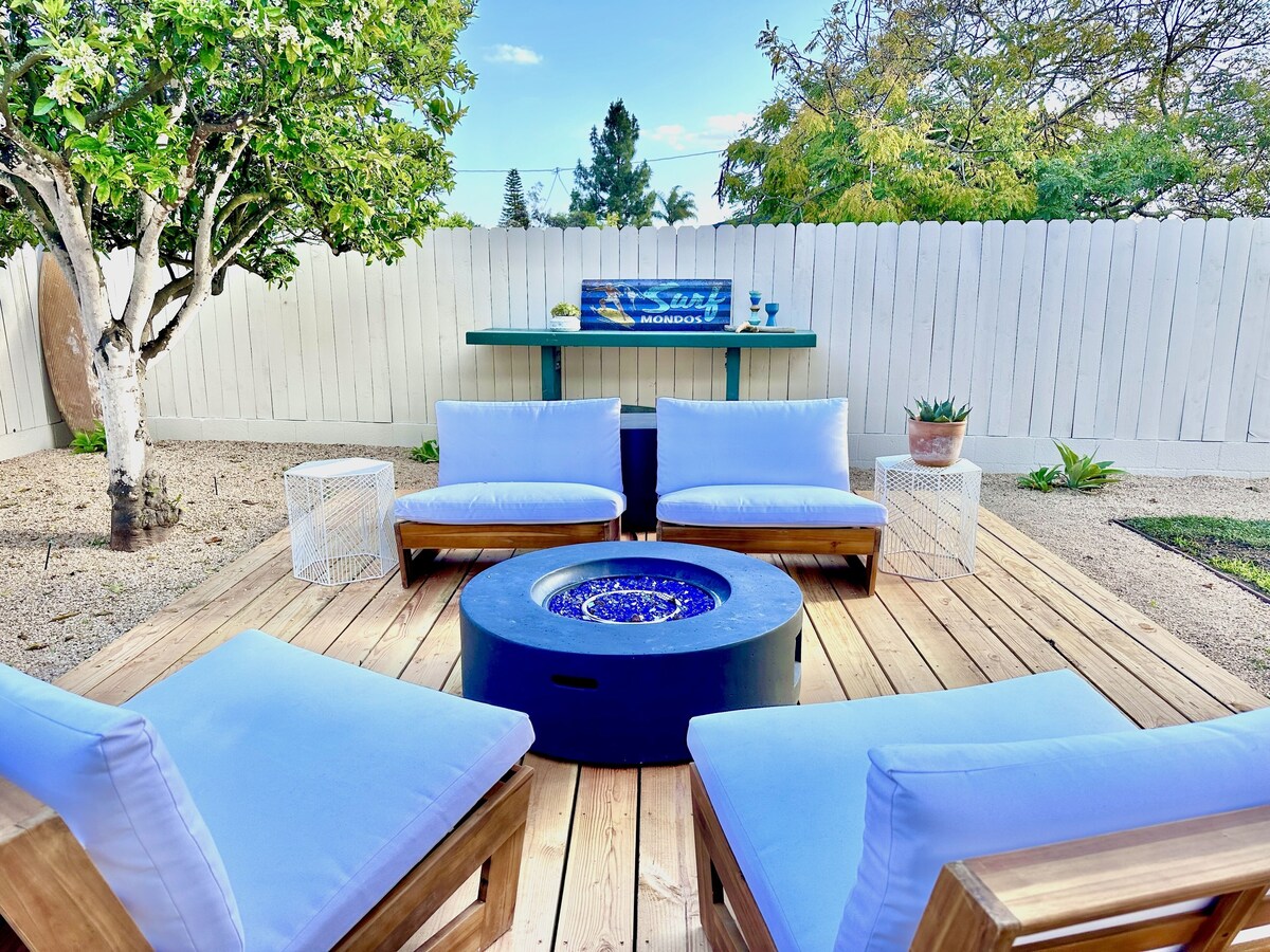 Stepping through the wall gate, you'll find a beautiful, private oasis. The massive yard is loaded with hangout spots: outdoor dining and 7 burner chef's grill, group lounge with fire pit, couples hammock, prime sunspot with chaise lounges, breakfast bistro set and herb garden. The 2bedroom (king+queen) 1 1/2 bath cottage also has lots of closet space, a dedicated office, fully stocked kitchen, laundry room, dining nook and 65\