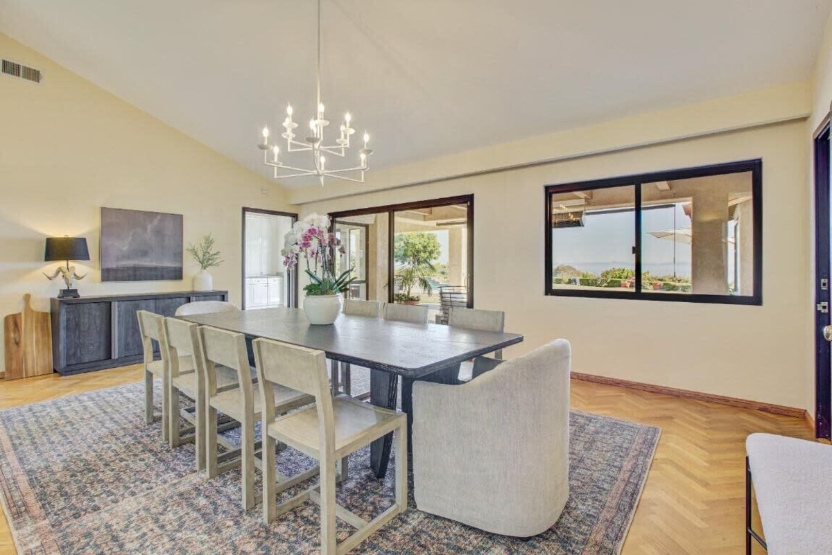 ## Space Enjoy unobstructed ocean views and gorgeous sunsets from nearly every room of the house! The single-story main house has 5 bedrooms and 4 baths. A guest apartment with efficiency kitchen is attached to the main house and graces the free-form pool and spa. The pool house is not included with the rental and is used as storage for the owners. An extensive patio with built-in heaters wraps around the back of the home creating optimal outdoor living at it's finest! AC available in the primary bedroom and the attached 2nd unit. There are roses, raised planting beds, and many producing fruit trees (avocados, citrus, etc.) in the garden and fully fenced yard. Community of 9 homes has access to a private tennis court. If you are someone who seeks privacy and finds stunning ocean views irresistible, this property will not disappoint. Don't miss this opportunity to rent this property! This house does not have live TV service. All smart TVs are equipped with apps (Netflix, Hulu, Youtube TV and Amazon Video) for your streaming pleasure. Unit has fast wifi. There is private parking for 3 cars. *Not available for daily rental. Month long+ rentals only. * *NO PARTIES: This house is located in a quiet community and the concerns of our neighbors is our top most priority. We have a strict 'No Party' policy-parties or events are not allowed. Quiet hours are enforced from 10pm-8am.* *PETS: ONLY 3 PET ALLOWED (N/A to service animals, applicable to ESA's). A pet fee will apply; pets can not be left unattended in your room. Please add your pet to the reservation, or disclose your pet to our hospitality team after booking. *POOL LIABILITY WAIVER: once booked, we will request the guest's direct email address to finalize the standard pool liability waiver that is required. The pool is unheated, and the spa can be controlled by a tablet in the house, or remotely by our team members. *Our cleaning fee includes a professional cleaning of the house, patio/grill, outdoor space and hot tub after every guest. As part of The Living Wage Pledge, we are committed to paying our cleaners fairly. A living wage is a minimum income necessary for someone to meet their basic needs and participate in their community.* ## Interaction This is a self-serve stay. We are off-site hosts; there is no front desk or office, and we provide contactless self-check-in. We have a dedicated hospitality phone line in case of emergencies (24/7) and our team is available on call, text, or chat during 5 am - 1 am to help assist you during your stay! ## Neighborhood The most amazing part of this property is its location…less than a mile to Mesa Lane Beach and just a few minutes from famous State St. and Stearns Wharf! ## Notes For security, there are cameras on the exterior of building. *There is a 4% processing fee for all refunds on bookings made on our direct websites and Vrbo.* Full refund only if canceled within 48 hours of booking and at least 28 days prior to check-in date minus 4% credit card transaction fee If canceled after 48 hours, no refund for the first 30 nights from the date of cancellation. If canceled with fewer than 30 days remaining on the reservation, the reservation is nonrefundable. If canceled after the trip has started, the following 30 nights of the reservation are nonrefundable. Our prices include all fees. No hidden fees.
