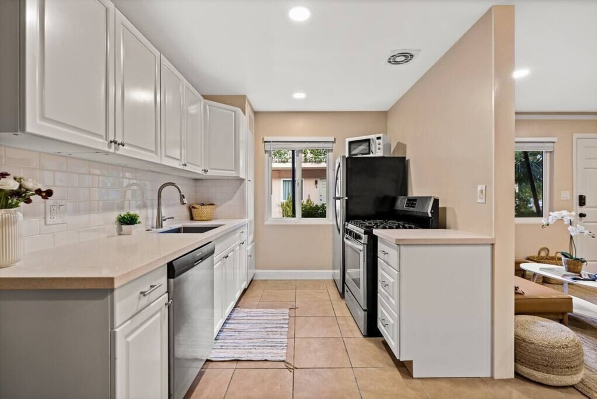 Summary: This recently renovated 1 bedroom apartment with full kitchen and living room is walking distance to the beach and downtown! Sleep soundly on a Casper King mattress with hotel quality linens. Bathroom products from Public Goods and Ralph Lauren towels. Living room has a comfy sectional and 48\ s West Beach neighborhood. One of the most walkable and desirable areas of Santa Barbara, you are just a few block walk from West Beach, Stearn ,