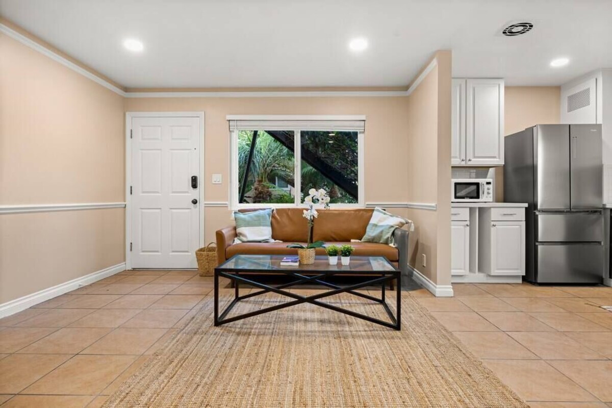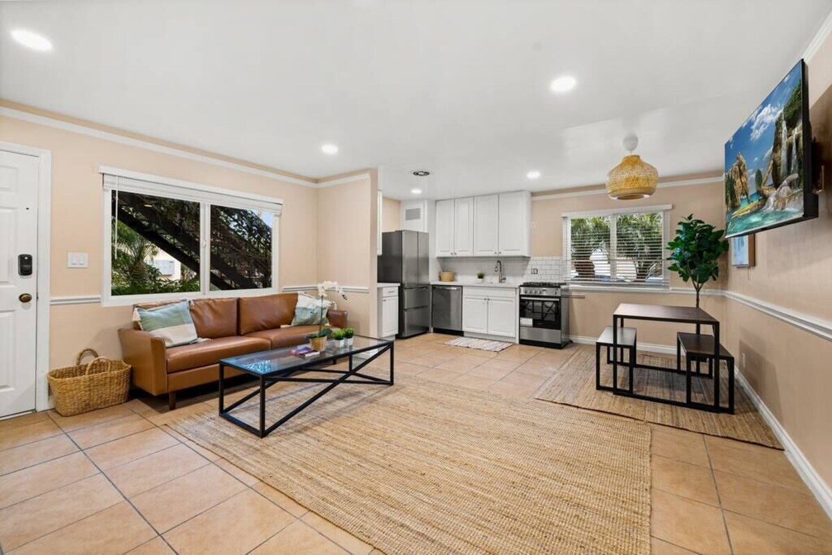 Summary: Tucked away in a tropical courtyard just steps from the beach, this fully renovated one bedroom apartment complete with full kitchen and living room has everything you'll need for your next Santa Barbara getaway. Sleep soundly on a king Casper mattress with hotel quality linens. Kick back on a sectional sofa watching the 50\ s West Beach neighborhood. One of the most walkable and desirable areas of Santa Barbara, you are just a few block walk from West Beach, Stearn ,