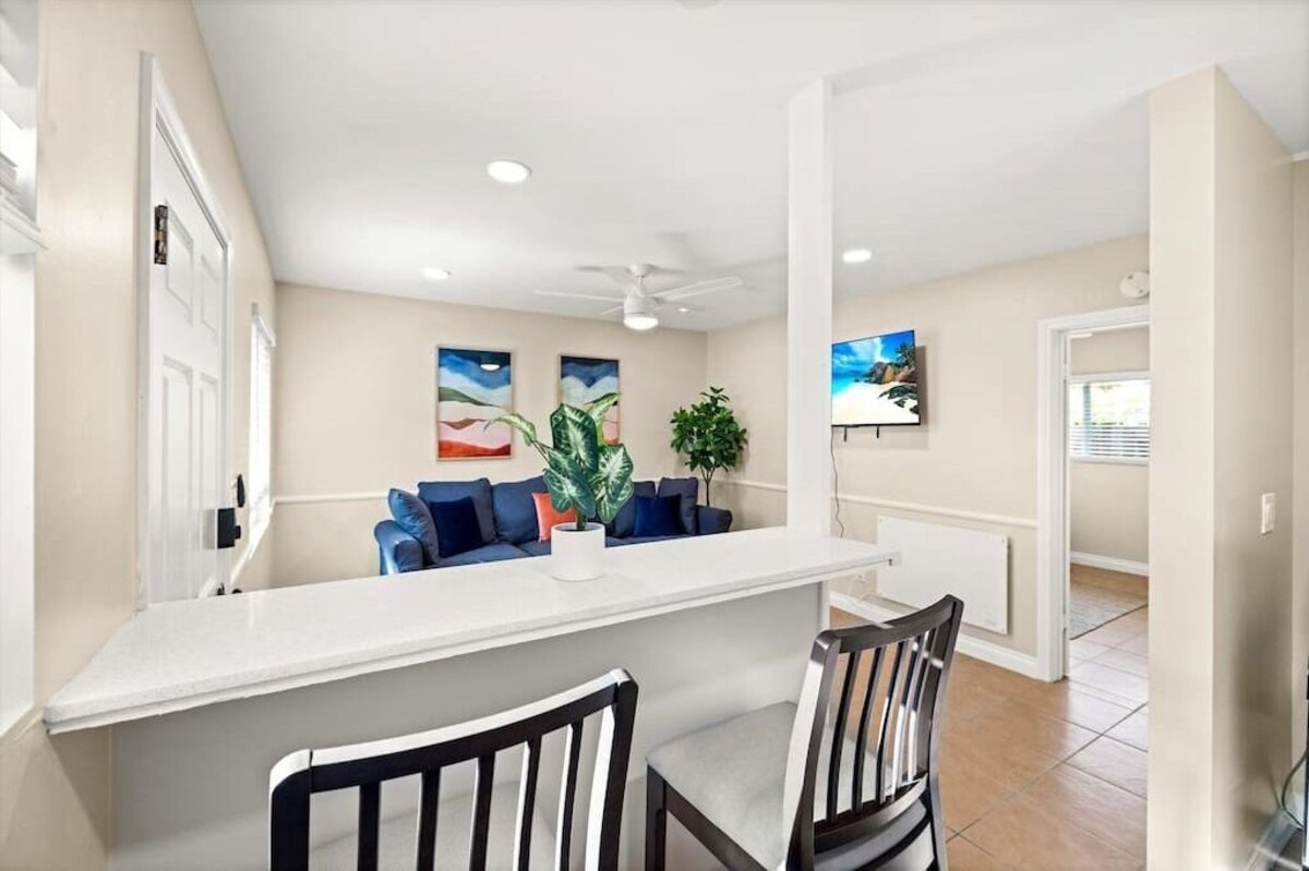 Summary: Tucked away in a tropical courtyard just steps from the beach, this fully renovated one bedroom apartment complete with kitchen and living room has everything you'll need for your next Santa Barbara getaway. Sleep soundly on a brand new mattress with hotel quality linens. The pull out sofa with queen bed is perfect for kids! The kitchen is fully equipped with essentials. Bathroom products from Public Goods. The central location provides easy access to all SB has to offer. Pet friendly! The Neighborhood: This listing is located in Santa Barbara's West Beach neighborhood. One of the most walkable and desirable areas of Santa Barbara, you are just a few block walk from West Beach, Stearn's Wharf, and right on the edge of the hippest area of Santa Barbara, the Funk Zone. The property is also conveniently located right across from the Train Station, making it extremely convenient for utilizing public transportation. Our prices include all fees. No hidden fees.