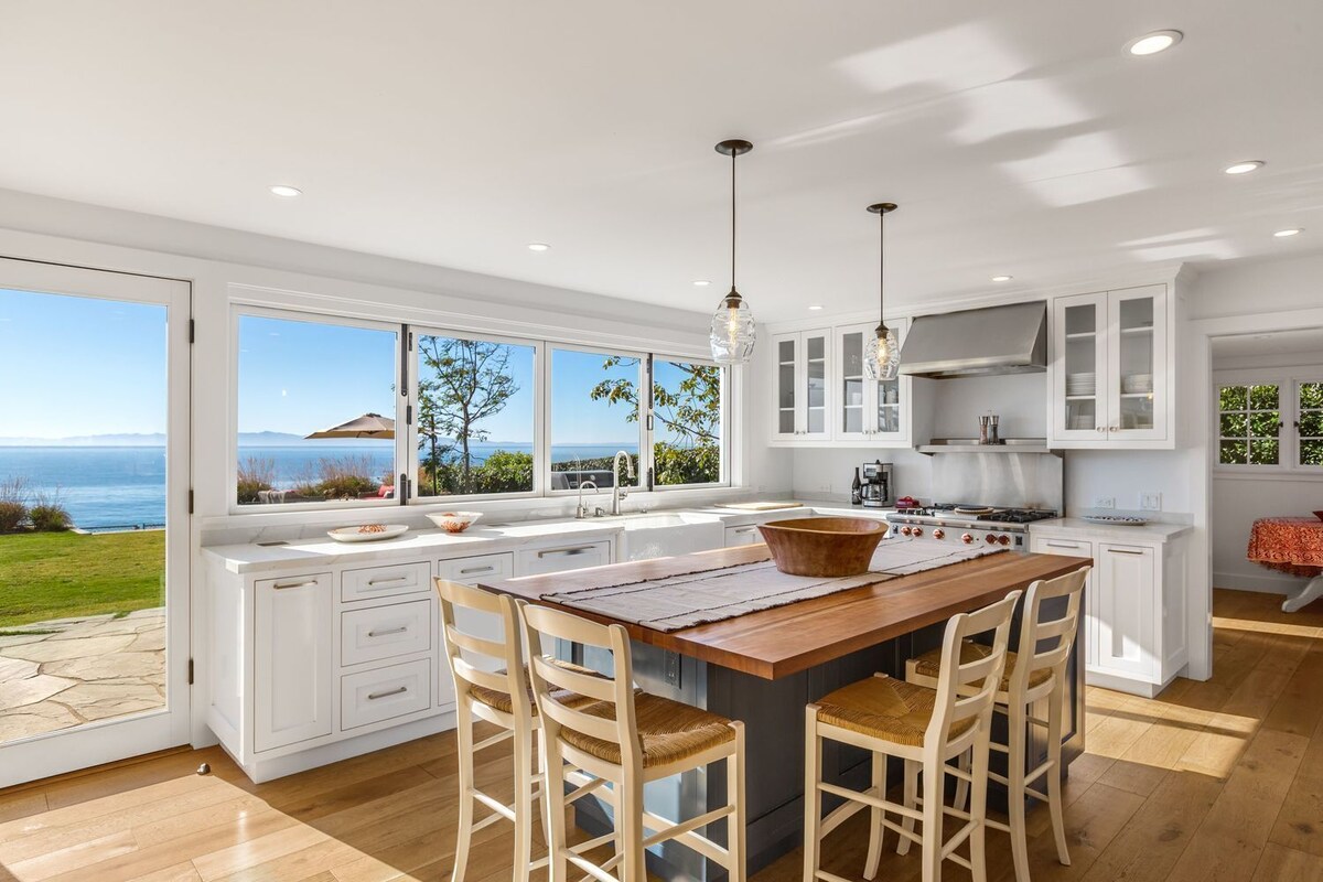 Oceanfront home with sweeping views of the coast and the islands, walk to the beach and coffee shops. See whales and dolphins from almost every room and the hot tub. A private peninsula (a former WWII cannon site) provides privacy and whitewater views up and down the coast. Hear the waves at night. Other features include bikes, fire pit, EV charging, and game room. The backyard is entirely fenced - dogs welcome (sorry, no cats.) Beach Access: The house in located on a bluff overlooking the ocean. Access to the beach is via a set of stairs just down the street. The house comes with stand-up paddle boards, beach chairs, boogie boards, umbrellas, etc. Events: If you intend on hosting a small group or gathering, before booking or making a reservation, please send an inquiry with a description of your event. NEW! Ojai Mountaintop Property: Shoreline Bliss guests now have exclusive access to a 58 acre property overlooking Ojai, the Topa Topa Mountains, the Channel Islands, and the 65,000 acre Canada Larga Ranch. Perfect for a day trip with picnics, biking, hiking or as an overnight with camping. A 75 minute scenic drive from Santa Barbara. Access instructions and Ojai area suggestions provided after check in. Our prices include all fees. No hidden fees.