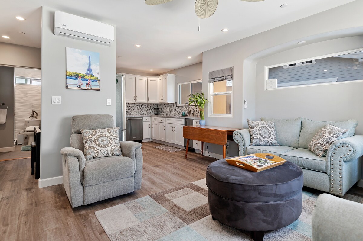 2 BEDROOMS | 1.5 BATHROOMS | 4 GUESTS *This property requires a 30-day minimum. If you want to be in the middle of all the action but still have a peaceful spot to rest your head, then look no further. Situated in Downtown Santa Barbara on a quiet and hidden street, is this charming private Paradise Retreats residence. You’ll be just two blocks away from the “Art and Theatre District” which boasts an impeccable range of restaurants, theatres, museums, and art galleries. If you’re in the mood for a little wine tasting and beach enjoyment, hop on one of the many rental scooters or bikes placed throughout town and take a quick tour of State Street’s scenery. Cruise down until it ends at the beach or hop on Stearn's Wharf for a glass of wine with incredible ocean views. This two Bedroom, two Bathroom property has been renovated with the latest updates and modern conveniences to make you feel right at home. The cozy Living and Dining Rooms flow together into a fully stocked Kitchen complete with upgraded appliances. A King Bed in the Primary Bedroom and Queen Bed in the second Bedroom adorn the property with a shared Bathroom, that also includes a separate Powder Room and Laundry area. A private patio offers a BBQ and outdoor dining space to decompress in the evening. Enjoy the small touches of comfort, such as a large flatscreen tv and standing keyboard, that are hidden throughout the home. HIGHLIGHTS: - Steps from Downtown - Walk Everywhere! - Updated Interior FAQ's: - Property Address: Available after reservation confirmation - TV's: 3 TV's: 55\ (1) - High Speed WiFi: YES - Coffee Maker: Nespresso - Bedroom and Bathroom Details: See 'Room Details' tab below - Parking Max: 2 Cars (Garage-0 / Driveway-2 / Street-Limited) - # of King Size Beds: 1 - Air Conditioning (A/C): Wall Unit **GUEST AGREES TO ELECTRONICALLY SIGN OUR RESERVATION AGREEMENT within 2 days of booking. (Emailed to Guest upon booking.)** POLICIES: - Minimum Age of Primary Guest: 30 years or older. - Quiet Hours: 9:00pm-9:00am. Please respect our neighbors. - No Smoking on Property. - Pet Policy: Call us! - No Party Rentals or Hosted Events. - Check-in: 3:00pm or later. - Check-out: 10:00am or earlier. - Manager/Homeowner Reserves the Right to Deny Reservation. - Until Confirmed, Rates are Subject to Change. Please note: We require an eSigned short-term rental agreement before finalizing your reservation. Pets may be considered at this home but require written authorization and additional fees. Our prices include all fees. No hidden fees.