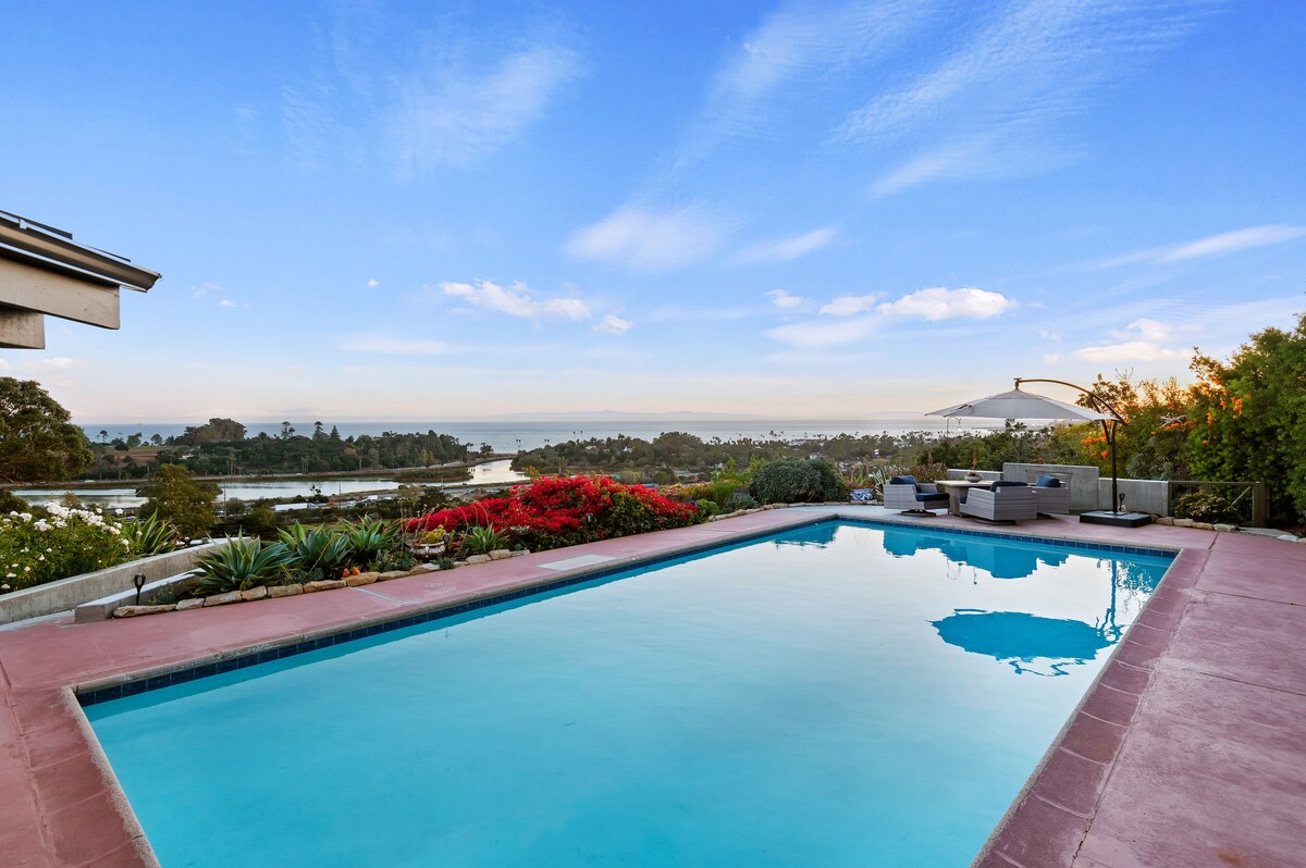 This newly designed farmhouse overlooks the exclusive Montecito Club, Andree Clark Bird Refuge and the historic east beach. Immerse yourself in the 180-degree views of the Pacific Ocean from this incredibly private 1.5 acre property with unparalleled views of the Channel Islands. This home offers an open floor plan, with kitchen, living and all bedrooms providing an ocean view. Bring in the ocean breeze by opening the full glass sliders to the covered outdoor patio. State of the art kitchen with all new Thermador & Miele appliances, double oven with steam oven, induction stove, large island with seating for 4 - all the kitchen appliances you can possibly dream of are hidden away in the appliance garages. And as a bonus just outside the kitchen is a courtyard with fresh herbs to cook with. Conveniently located off the kitchen is a laundry room with a Scotsman ice maker so you never have to worry about running out of perfectly clear ice. The primary bedroom has an en-suite bath, dual zone sleep number California king bed with heaters for your feet and under bed lighting. Snuggle up while streaming your favorite show on a 65\ TV with 5 channel surround sound while you relax in front of the fireplace. End your evening with a nice steam shower and a stunning view of the Montecito sunset. Indulge yourself in this truly magical and private property. Pets considered on a case by case basis with an additional pet fee deposit. No garage. Multi room audio throughout the house. Propane and charcoal combination grill Large pool On demand hot water heater AC Double sink in laundry room LG washer & dryer Plenty of room for parking Perimeter of home has security cameras. In home security system Keyless front door entry Soft water RO drinking water Tenant must provide homeowner with renters insurance covering the entire period of their stay for stays longer than 90 days. Requirements will be provided to interested tenant. There must be a signed lease agreement before rental will be confirmed. Additional monthly fee if guests want pool heated. 2.5 miles to Montecito's lower village or upper village 3 miles to butterfly beach & Coral Casino Beach and Cabana Club 3.5 miles to Santa Barbara funk zone and state street 3.5 to San Ysidro Ranch hotel Our prices include all fees. No hidden fees.
