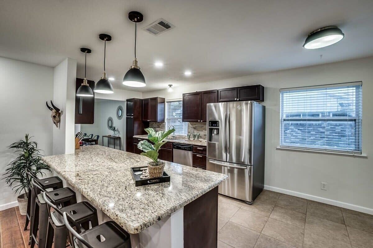 Summary: Conveniently located near Coit Rd and Hwy 635, this getaway is only minutes away from Dallas’ main attractions! This spacious property has everything you need for a memorable stay. With a clean modern design, tasteful rustic décor, and comfortable furnishings throughout, this place is just a short drive away from all the best attractions and amenities the city has to offer! ✔ 5 bedrooms (sleeps 12) ✔ 2 bathrooms ✔ Fully equipped kitchen ✔ Spacious backyard ✔ Fire pit, BBQ grill, lawn games The Space: Welcome to your home away from home in the much-desired neighborhood of Spring Valley Park! Step inside and be greeted by a beautiful balance of clean modern design accented with cozy rustic touches. The large living area is perfect for gathering with friends and family, while the fully equipped kitchen has everything you need to cook up a storm. Spend some time in the perfectly manicured backyard, lounge by the fire pit, and challenge each other to some friendly lawn games! Our home caters to both short-term and medium-term stays, making it an excellent choice for corporate housing needs. Whether you find yourself temporarily displaced from your home or require accommodations for your team during an extended project in our area, we provide a welcoming and comfortable \ experience. ★ KITCHEN ★ Whether you're preparing a quick snack or an elaborate feast, this kitchen has everything you need to make it a success. ✔ Fully equipped kitchen for all your cooking needs ✔ Standard appliances, including fridge, freezer, stove, oven, dishwasher, and microwave ✔ Cooking essentials including pots, pans, utensils, etc. ✔ Breakfast bar seating for 4 ★ DINING ROOM ★ In this stylish dining room, contemporary design meets classic elegance for a timeless atmosphere. ✔ Dedicated dining room ✔ Dining table with seat settings for 8+ guests ✔ Wall décor and natural light ✔ Place settings and dining utensils ★ LIVING ROOM ★ Comfort and style are seamlessly combined in this spacious living room! ✔ Couch and chairs for plenty of seating ✔ Coffee table, designer rug, and artwork ✔ Wall-mounted TV and high-speed Wi-Fi ✔ Cozy fireplace for a warm inviting environment ★ BEDROOMS ★ Our tranquil and serene bedrooms offer the perfect oasis for a good night's sleep. With plenty of sleeping space for up to 12 guests, you'll have ample room to stretch out and relax. Each bedroom has been thoughtfully furnished with your comfort in mind, from plush bedding to cozy blankets and pillows. ✔ 5 bedrooms furnished with your comforts in mind ✔ Master ensuite with a king-sized bed and ensuite bathroom ✔ 4 additional bedrooms with queen beds for additional sleeping space ✔ Can comfortably sleep up to 12 guests ★ BATHROOM ★ Our bathrooms offer a practical and functional space for all your hygiene needs. Equipped with both a bathtub and a walk-in shower, you'll have options for refreshing yourself during your stay. Clean, well-maintained, and equipped with essential toiletries, you’ll find everything you need here! ✔ 2 full private bathrooms ✔ Stand-up walk-in shower for easy access ✔ Relaxing bathtub for warm bubble baths ✔ Essential toiletries included such as towels, soap, toilet paper, etc ★ BACKYARD ★ This backyard is the perfect retreat for those looking to relax and unwind! During the day, feel free to challenge your friends to some friendly lawn games. At night, grab a seat on one of the loungers and gather around the fire pit. The fire will keep you nice and warm as you chat late into the evening while the string lights create a cozy ambiance. ✔ Beautifully manicured lawn ✔ Outdoor BBQ grill and lawn games ✔ Fire pit with loungers ✔ Fully fenced yard for your privacy ★ OTHER AMENITIES ★ Free parking is available to all guests in the garage or on the private back driveway. If additional parking is needed, feel free to park on the neighborhood streets as well. The laundry room is fully equipped with a washer and dryer should you need to refresh your clothing during your stay. Lastly, we must stress that we do NOT allow parties or large unauthorized gatherings of any sort at our property. We are adamant about only welcoming families and groups who are looking to relax and enjoy the beautiful stunning backyard and the amenities the home has to offer. Guest Access: Enjoy the Comfort and Convenience of Self-Check-In: we make your arrival seamless with our easy self-check-in process. One day before your arrival, you'll receive an email with detailed instructions and answers to any last-minute questions you may have. If anything is unclear or if you need assistance, our team is just a message away — we’re always here to help and make your stay as smooth as possible. Early Check-In & Late Check-Out Available: need a little extra time? We’re happy to offer early check-in and late check-out options, subject to availability. These upgrades may include a small additional fee. If you're interested, we’ll do our best to accommodate your request. The house is exclusively yours, without interruption for the duration of your stay, so relax, unwind, and make yourself at home. The Neighborhood: Come experience the best of Dallas! A bustling cosmopolitan known for our sports, history, BBQ, and frozen margaritas, Dallas is home to more than a dozen neighborhoods and districts that each have their own distinct vibe and attractions. From spectacular museums and performing arts venues in the Arts District to the buzzing nightlife of live music and lively bars, there’s something for everyone here in Dallas! Here are some attractions you won’t want to miss: ✔ Dallas Arboretum Botanical Gardens, a nationally acclaimed 66 acre display garden features breathtaking floral displays [20 min drive] ✔ White Rock Lake Park, dedicated green space circling a lake offering trails, boating, picnicking and bird-watching [20 min drive] ✔ Children’s A