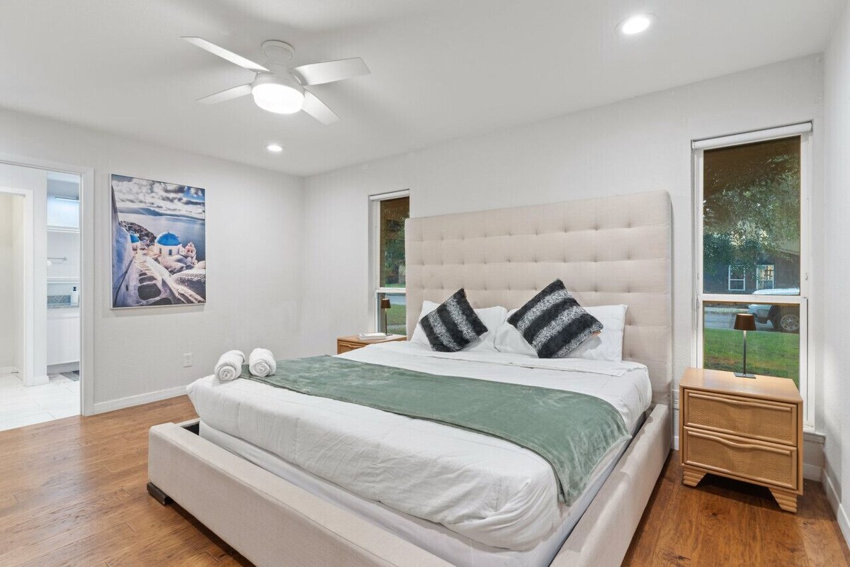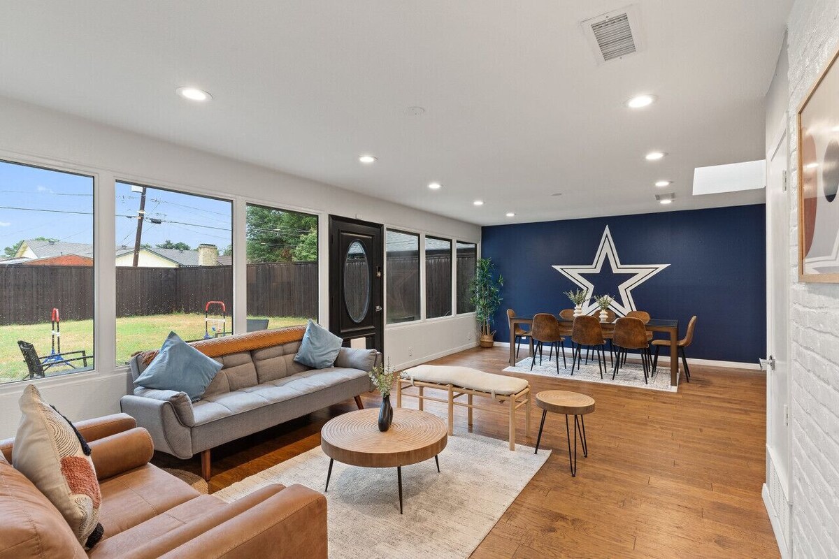Unwind in the plush living room: Catch up on shows on the smart TV, curl up with a book by the lamp`s warm glow, or stay comfortable year-round with air conditioning and a ceiling fan. Fuel your adventures: Prepare delicious meals in the fully equipped kitchen, boasting modern appliances like a refrigerator, oven/stove, microwave, and dishwasher. Unwind after exploring nearby attractions or simply relax in the comfort of this charming abode. Book your Dallas escape today! Our prices include all fees. No hidden fees.