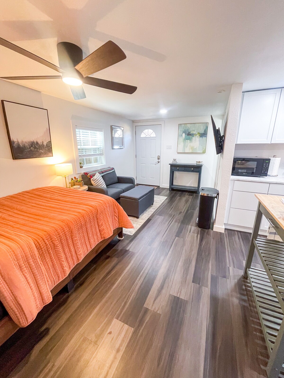 Welcome to our fully furnished guest house unit, tailored for the traveling professional! Located in the upscale area of Kessler Park, just 1 mile from the vibrant Bishop Arts District of Dallas, this charming abode offers both convenience and luxury. Situated within walking distance of a lovely local park, you'll have the perfect opportunity to enjoy the outdoors during your month-long stay. With a well-appointed kitchen and new appliances, you can create meals that will make you feel like you are right in your own kitchen. Space boasts its own private laundry making settling that much easier. Step outside to unwind in the spacious outdoor area, ideal for relaxation after a busy day. Access to all outdoor patio furniture as well as grill and fire pit provided. Book your stay now and experience the ultimate blend of comfort and convenience in the heart of Dallas. We are extremely catered towards the traveling professional as we are extremely close to all major hospitals and highways to connect you to the heart of the city. Our prices include all fees. No hidden fees.