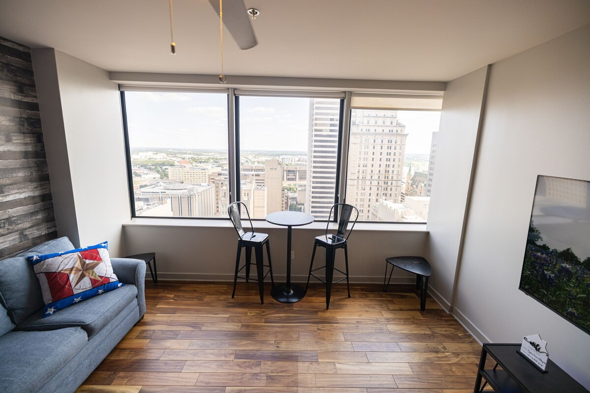 Experience Texas charm in the heart of downtown Dallas! This stylish 1-bedroom, 1-bath apartment features warm décor, a comfy king bed, and a pull-out sofa—perfect for families or couples.