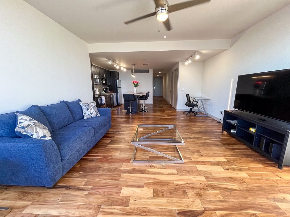 Welcome to your cozy home away from home in downtown Dallas! This stylish 1-bedroom, 1-bath apartment features a king-size bed, a sofa bed, large city-view windows, a fully equipped kitchen, and a comfortable living space with a flat-screen TV. Enjoy access to a rooftop pool, a gym, and a designated parking space in the building’s garage. Perfect for up to 4 guests, this family-friendly retreat is just steps from top attractions, restaurants, and entertainment, offering the best of Dallas right at your doorstep.
