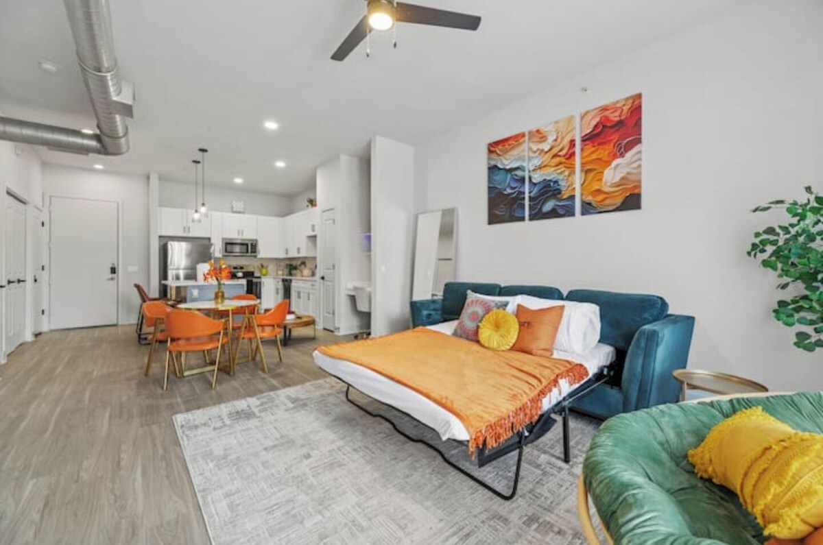 About this space Welcome to Vivid Vibes Getaway, your vibrant retreat in Dallas! This eclectic apartment features bold décor, natural light, and modern comforts for a unique & cozy stay. Relax in the stylish living area, cook up a feast in the fully equipped kitchen, and unwind in the serene bedroom. Enjoy stunning views from the private patio or explore trendy cafes and shops just steps away. Vivid Vibes Getaway offers the perfect blend of energy and relaxation. Book your stay & dive into the heart of Dallas! The space - 2 Queen Bed - 1 Queen Sleeper Sofa - Free Covered Parking -2 Full Restrooms - Premium Toiletries - Body Wash, Shampoo & Conditioner & Handsoap - Soft Toilet Paper - Fully Equipped Kitchen - Pots, pans, baking trays, cooking utensils & Toaster - Foil, Salt+Pepper, Oil & Spice Wheel - Plates, Bowls, Cups, Mugs & Cutlery - Included Dish Detergent PODS - Keurigg Coffee Machine - K-Cups - Teas - Creamer, Sugar & Sugar Substitutes - Cleaning Supplies - Disinfectants & Towels - Washer/Dryer & -Included Detergent PODS - (3) 55\ ,