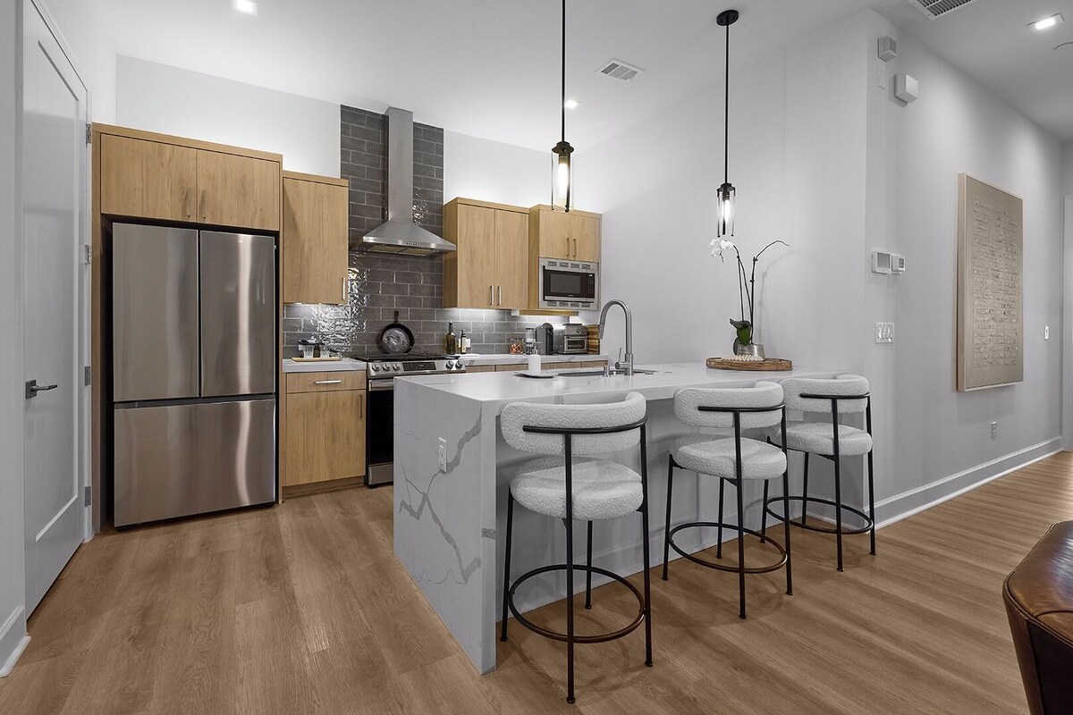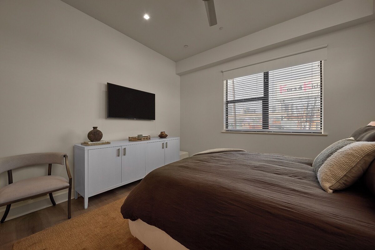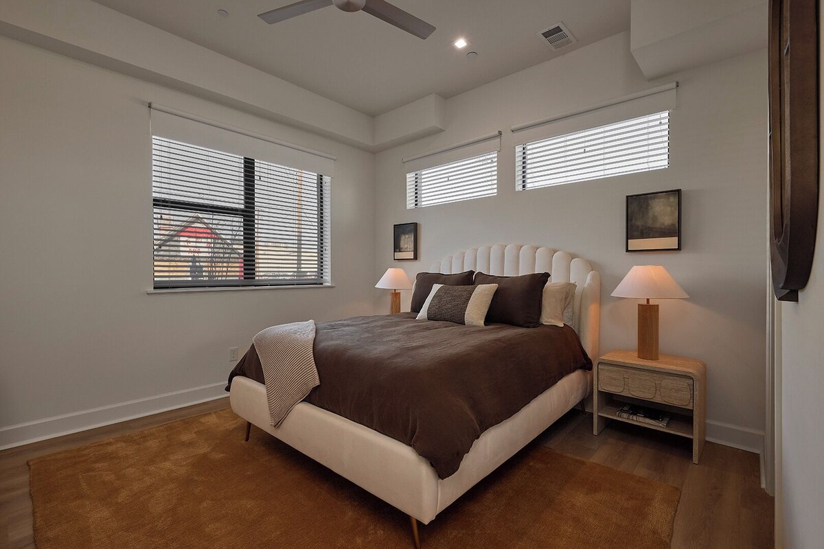 Discover Dallas' vibrant Cedars neighborhood in this stylish 2-bedroom, 2.5-bathroom condo, perfectly located steps from the Dallas Farmers Market and minutes from the Kay Bailey Hutchison Convention Center. Enjoy a spacious open-concept kitchen and living area, an electric fireplace, stunning downtown views, walk-in closets with custom built-ins, and designer finishes. Whether for business or leisure, this western chic retreat offers the ideal blend of comfort and convenience. Enjoy the convenience of street parking and the added security of a private, street-level entry with secured access. Our prices include all fees. No hidden fees.