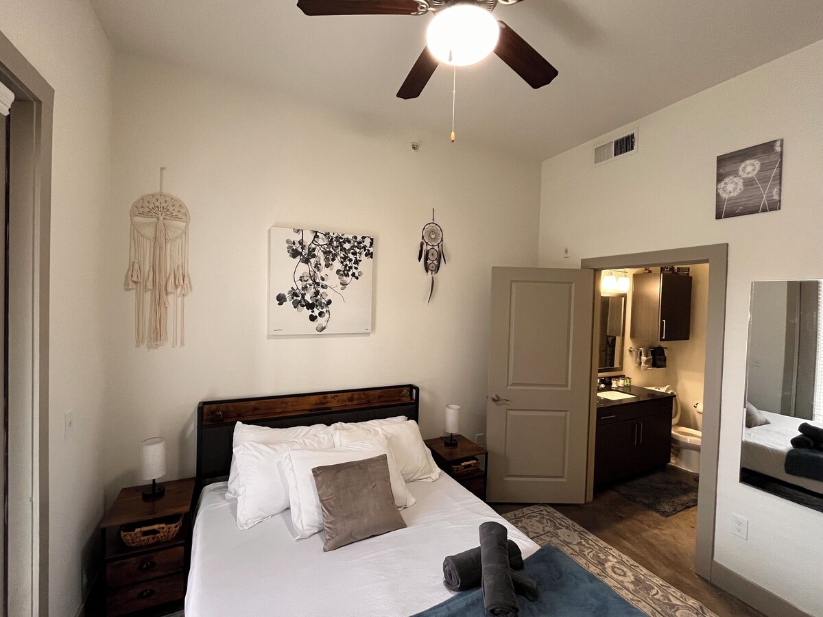 Nestled in Dallas, this delightful apartment offers a serene retreat for guests. With 1 cozy bedroom featuring a queen bed and a stylish living room with a sofa bed, this space is perfect for a small group or couple looking for a comfortable stay. Enjoy the convenience of amenities like a fitness room, WiFi, and a washing machine during your visit. Relax in the bathtub or explore the city knowing you have a peaceful oasis to return to. Enjoy all that Dallas has to offer when you stay at our place. Located in the medical district, you're just minutes away from UT Southwestern, Children's Medical Center, Parkland Hospital. Embrace comfort and convenience in your new home away from home! Our prices include all fees. No hidden fees.