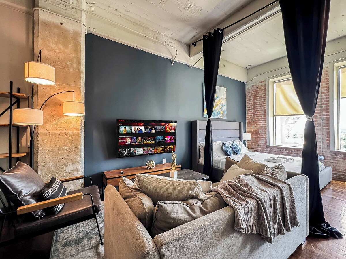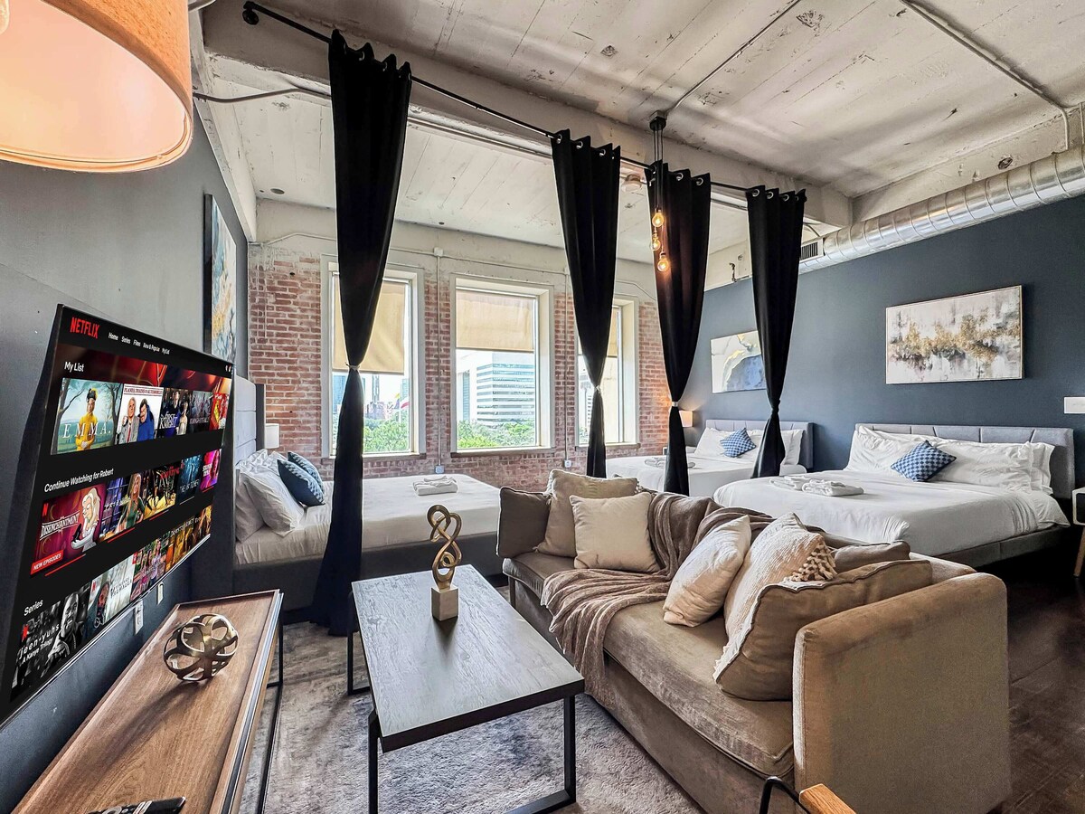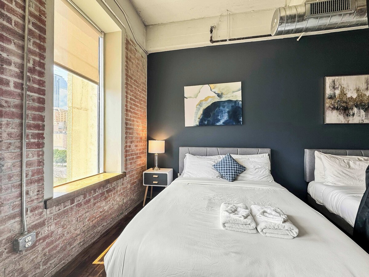 Summary: Only a 5-minute stroll from the Kay Bailey Hutchison Convention Center, our space is your ideal Dallas home base. Relax in style and start your mornings with breathtaking views of the Downtown skyline. Nestled in the city’s vibrant core, you’ll be within easy reach of acclaimed dining, major business hubs, renowned museums, and scenic parks. Perfect for both work trips and leisure escapes, our stay offers more charm and comfort than a standard hotel or basic rental—book your memorable Dallas experience today! The Space: Experience the charm of our stylish 2-bedroom, 1-bath apartment, offering sweeping views of Downtown Dallas. Designed with comfort and convenience in mind, this contemporary retreat ensures a smooth, relaxing stay. The open-concept living and dining area features modern décor and ambient LED lighting, creating a warm, welcoming atmosphere. The bedrooms provide peaceful escapes, enhanced by expansive windows, glowing city lights at night, and rich wooden floors. Sleeping Arrangements: • Comfortably hosts up to 16 guests with 8 beds: • 2 Full-size bunk beds with premium foam mattresses, plush pillows, and crisp linens • 2 Queen beds • 1 King bed • 1 Sofa bed • Second sleeping area situated in the living room with large curtains for privacy Highlights: • Elegant interior with thoughtfully chosen furnishings and amenities • 50” 4K HDR Smart TV in the bedroom and 58” 4K HDR Smart TV with free Netflix in the living room • Work desk, ergonomic chair, spacious walk-in closet, and flexible sleeping area with privacy curtains • Stylish coffee table Kitchen & Dining: • Fully stocked kitchen with modern appliances: oven, stovetop, microwave, fridge/freezer, dishwasher, coffee maker, and kettle • Dining essentials including cookware, silverware, glassware, and serving trays Bathroom: • Private full bath with tub/shower combo, sink, mirror, toilet, fresh towels, and complimentary toiletries We follow strict cleaning standards after each stay to ensure safety and comfort. If your travel dates are booked, browse our other nearby options. We look forward to hosting you in this beautiful, well-appointed Dallas apartment for a stay you’ll always remember! Guest Access: - Enjoy free access to the on-site pool and fitness center. - Benefit from easy self-check-in and check-out using smart lock technology. - Complimentary valet parking is available for one vehicle per booking (trucks are not permitted). - Our team is always ready to provide prompt and friendly support. - The property offers a convenient location with quick access to major roads and highways. - In-unit laundry facilities are provided, complete with free detergent. - Customize the temperature with adjustable air conditioning and heating for your comfort. - The kitchen is fully stocked with all the necessary cookware and utensils for your meals. - Rest easy with plush memory foam pillows for a peaceful night’s sleep. Other Things to Note: **Parking Restrictions:** Please note that oversized vehicles are not allowed in the parking garage. As per the building's parking policy, large vehicles will be refused entry during check-in. The following types of vehicles will not be permitted: 1. Vehicles with malfunctioning controls, breathalyzer systems, or defective brakes. 2. Large vehicles such as sprinter vans, extended vans, passenger vans with 10+ seats, or any vehicle taller than 6'8\ ,
