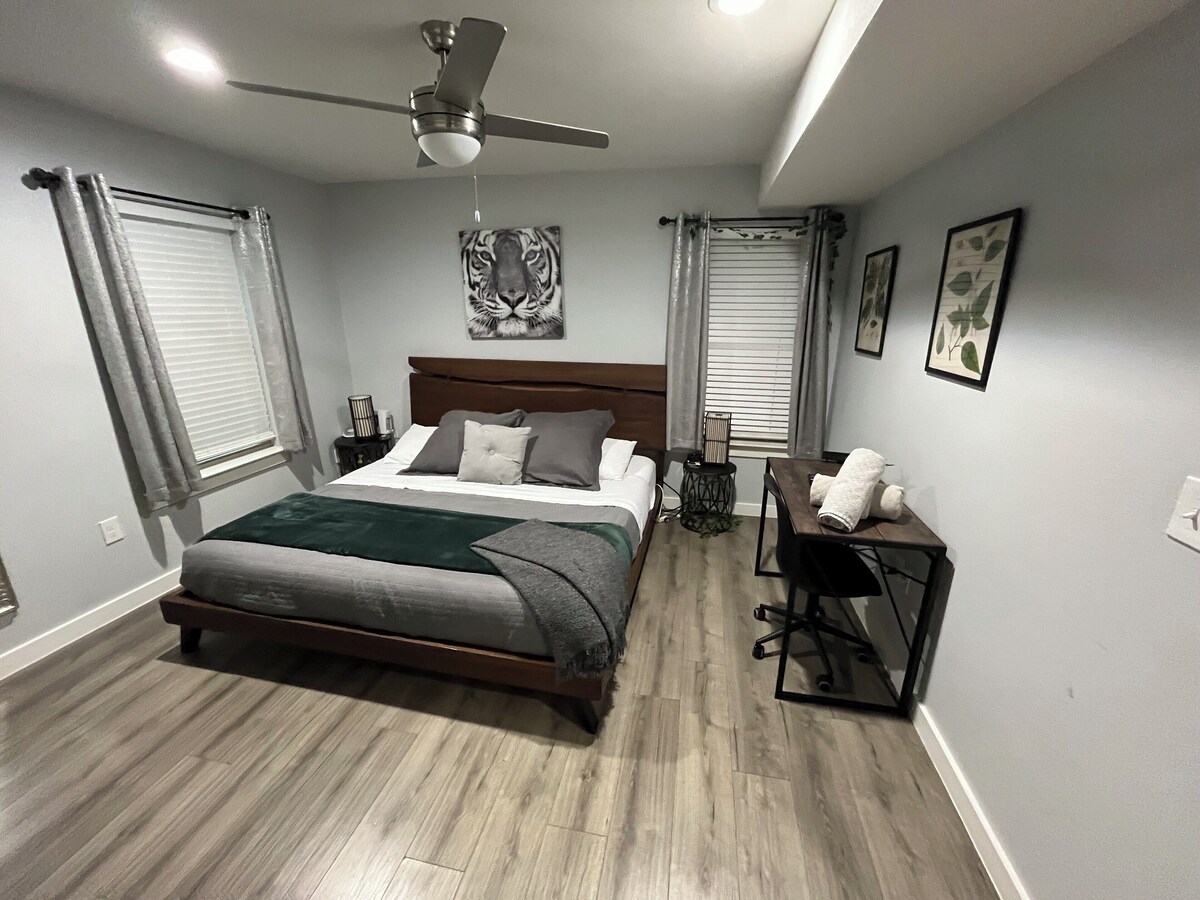 Your Dallas adventure begins at this 1-bedroom apartment. This nice and enchanting space offers a cozy living room with a chic safari design. Perfect for relaxing after a day of exploring. With amenities like AC, WiFi, and a washing machine, guests can feel right at home. It's easy to see why you'll be able to unwind at our place. 1 mile to downtown Dallas! Pets ok Designed for comfort and relaxation. * King BD w/outlets/USB ports * Unique & Cozy * Full Kitchen * Spacious shower * 1 FREE parking spot *610 sq ft Day trip to Deep Ellum 20 min to DFW Airport 15 min from Love Field Airport (DAL) 5 mins to Dos Equis Arena/Cotton Bowl Stadium/Fair Park King bed and king sized air mattress to fit up to 4 guests. 2 Smart TV's 65” and 55” Full kitchen with Keurig coffee maker, blender, and toaster. Designated work space with desk and chair for remote work. Smart house extras: Smart lock, Ring Doorbell & Alexa. Spacious and modern glass shower. Immaculately designed for comfort and relaxation. High speed Wi-Fi and designated work space with desk and chair for remote work. Self check-in with door code Guest access Entire space is included in this rental. Please make yourself at home Other things to note Please remember that you’re staying in a house, not a hotel. Please treat the space with respect. If any problems arise, we will do our best to take action ASAP, 24/7 See you soon! Additional Terms and Conditions: A cleaning fee of $115 will be added to the booking once your booking is confirmed. Stays for over 30 days: Pet fee of $68 (per pet) will be charged monthly. Extended stays past 60 days will result in an additional $200 extension fee per month to help with cleaning and maintenance of the property to make sure you can continue enjoying a well maintained home. 6 consecutive months is the maximum time allotted. Please message me for more details on extended stays! Our prices include all fees. No hidden fees.