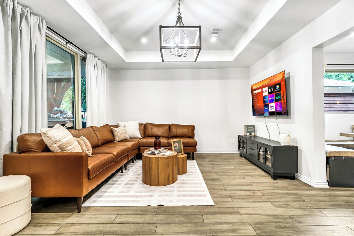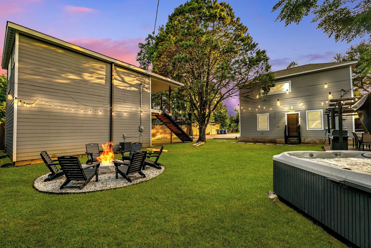 Located in a quiet neighborhood 5 minutes away from Bishop Arts District and 10 minutes from Downtown Dallas. This is a home where memories are made whether you’re watching your favorite movies in the private theater, relaxing in the hot tub after a day of sightseeing, or challenging your friends to a game of pool. This house has everything you need for the perfect stay. The space Welcome to your ultimate getaway! This spacious and stylish home is the perfect spot for friends, families, or group retreats looking for fun, comfort, and relaxation. Sleeps 10 comfortably in modern, cozy bedrooms Private Movie Theater with leather recliners, surround sound & Big TV Outdoor Hot Tub — soak under string lights and the stars Billiards Room for competitive fun or casual games Fire Pit surrounded by Adirondack chairs — perfect for s’mores and stories Grill & Outdoor Dining Area under a charming pergola Cornhole & Yard Games for daytime fun Popcorn machine, bean bag, and more for the full theater experience Fully stocked kitchen with large island for entertaining Our prices include all fees. No hidden fees.