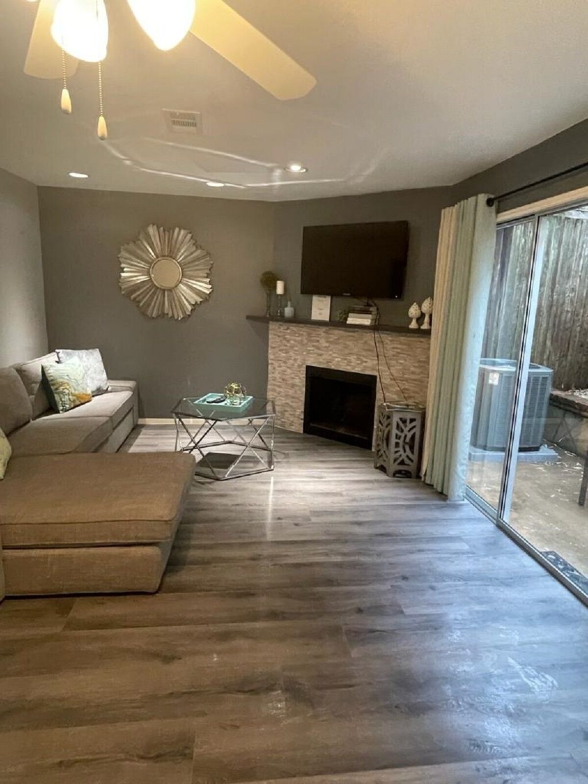 Located in Uptown, with DIRECT access to beautiful Katy Trail, this location cannot be beaten! This welcoming 2 story townhome style unit in a 4-plex is suitable for all travelers. Accommodation includes 2 bedrooms (1 king, 1 queen) and en-suite bathrooms, plus a sofa bed for up to 6 guests in total. Half bath on entry level, full equipped kitchen, in-unit laundry, a patio area, parking for 1 vehicle, Wi-Fi, Roku TV, central AC. Make this your home away from home! Well appointed townhome making for a comfortable and convenient stay of any length. Laminate flooring covers the lower level of the home, with carpet on stairs and upper bedroom level. Kitchen includes a dishwasher, gas range, microwave, coffee maker, and toaster. Complimentary coffee, sugar, creamer and some pantry items and spices are included. Toiletries, towels, iron/ironing board, hairdryer are all available for use. Our prices include all fees. No hidden fees.