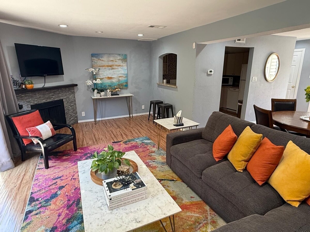 Located in Uptown, with DIRECT access to beautiful Katy Trail, this location is ideal for a visit to Dallas! This attractive 2 story townhome style unit in a 4-plex is suitable for all travelers. Accommodation includes 2 bedrooms (1 king, 1 queen) plus a full sofa bed, 2.5 baths, full kitchen including a dishwasher, gas range, microwave, laundry facilities, a patio area, parking for 1 vehicle, complimentary coffee, Wi-Fi, Roku Smart TVs, central AC. Your home away from home! Our prices include all fees. No hidden fees.
