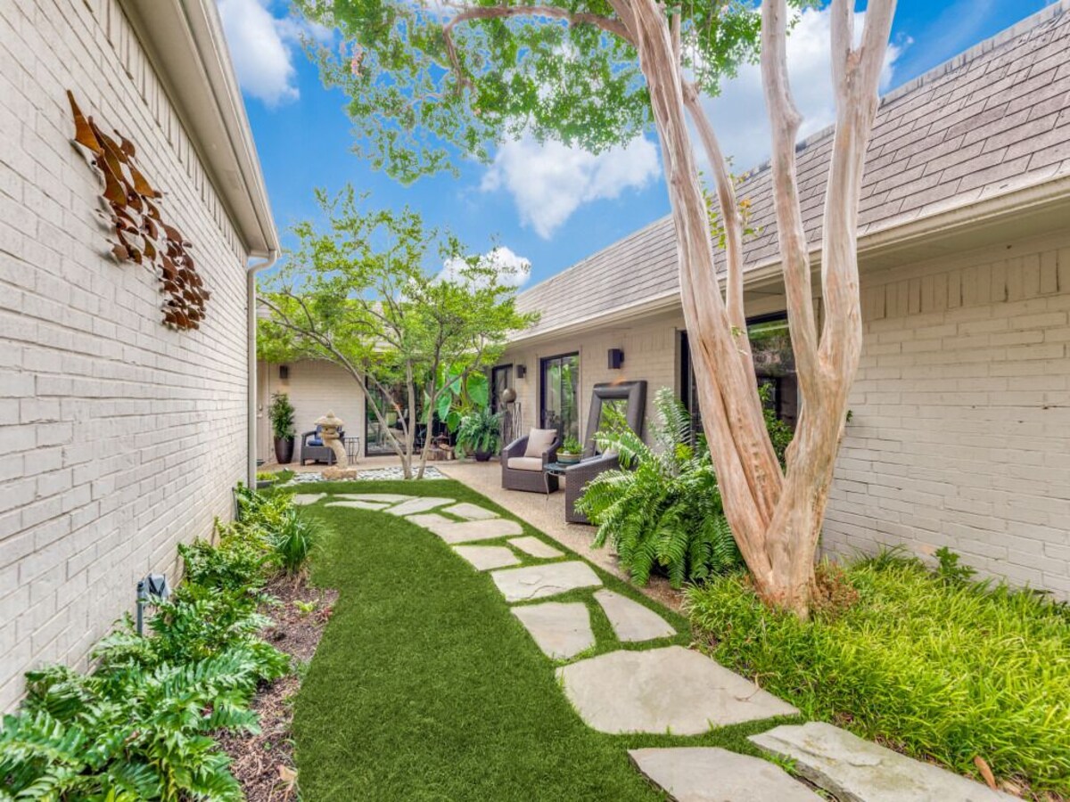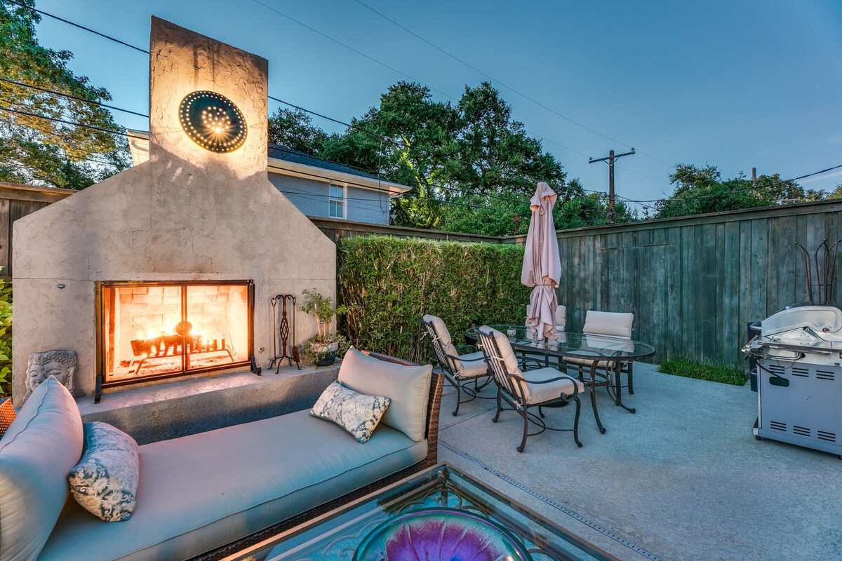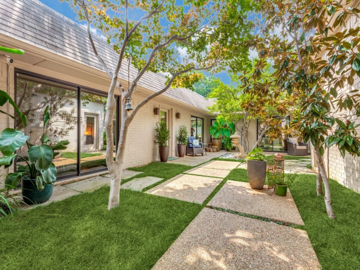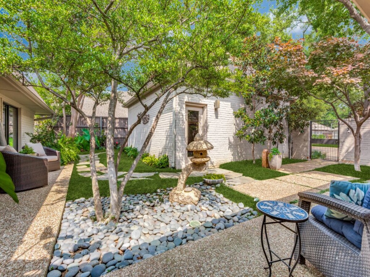 You will love this beautiful home in a superb location that's the perfect destination for a family vacation, romantic getaway, business trip, or relaxing weekend in Dallas. The house is spacious, welcoming and exceptionally well appointed. Contemporary decor and comfortable furnishings combine with original artwork from the owner's private collection to create a sanctuary that you'll want to keep coming back to. Bedroom suites are self-contained, allowing for privacy, and the comfy beds and fine linens will make you want to lounge and linger. Master suite boasts a large sunken tub and separate dressing rooms for you and your partner. But it's the spacious gourmet kitchen and living room that are the center of gravity here and perfect for entertaining, communal cooking, family dinners, and kicking back. For more formal entertaining, an elegant dining room seats 10. As many of our guests have commented, the outside space is a serene extension of the calming environment you'll find indoors. It's simply magical. There's a zen-like indoor courtyard and meditation garden where you can wind down with a cup of coffee or a glass of wine. But the pool area at the back is the crown jewel of this very special property. Complete with hot tub, outdoor fireplace, high-end grill and ample seating, lounging and patio space, this is the perfect environment for relaxing and socializing all day long and into the wee hours. What's more, the owner takes a keen interest in her plants and shrubbery so you're always surrounded by a colorful and well-tended garden. Location: second to none. West Highland Park. Leafy and peaceful, it's one of Dallas's most sought-after neighborhoods. Easy access to DFW and Love Field airports. A stone's throw from Whole Foods. And close to SMU, downtown Dallas, world class shopping, dining, museums, The Design District, Victory Park, sporting events, and internationally acclaimed UT Southwest Medical Center. Our prices include all fees. No hidden fees.